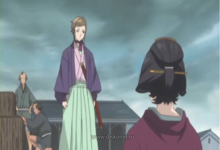 Bakumatsu Kikansetsu Irohanihoheto 幕末機関説 いろはにほへと 幕末機関説 いろはにほへと Производство: Япония Жанр: приключения, история, фэнтези, сёнэн Тип: ТВ (26 эп.), 25 мин. Трансляция: c 06.10.2006 по 06.04.2007 Выпуск в 12:00 [утренний сеанс] на GyaO Режиссёр: Такахаси Рёсукэ / 高橋良輔 / 高橋良介 /高橋和十八 Автор оригинала: Такахаси Рёсукэ / 高橋良輔 / 高橋良介 /高橋和十八 Описание: Пожалуй, это самое исторически достоверное аниме про Бакумацу из всех, что я видела. Да, там присутствуют волшебные мечи и летающие головы, и основной сторилайн насквозь мистический, но прелесть этого аниме – не в основном сторилайне. Она в декорациях, которые поставлены так тщательно, что нефанатам истории без помощи википедии не разобраться. А фанаты могут ловить кайф, наблюдая парад исторических личностей на заднем плане и вспоминая хронику событий, воссозданную немногочисленными, но точными штрихами. В этом аниме пресловутые historical settings настолько хороши, что затмевают сюжет. Сюжет, впрочем, не то чтобы совсем плох. Есть некий Герой (хмурый красавец в хакама), отягощённый таинственным прошлым, а именно Великой Миссией (утихомиривать тысячелетнего призрака, который временами просыпается и безобразничает, вмешиваясь в историю) и Великой Виной (будучи телохранителем Сакамото Рёмы, не смог спасти его от убийц). Присутствует также Предполагаемая Возлюбленная и Смертельный Противник, а также связка злодеев разной степени харизматичности. Все они кружат друг вокруг друга (переглядываются, дерутся, молчат в красивых позах) и вокруг упомянутой головы тысячелетнего призрака, пока реальная история разворачивается вокруг. Если пытаться взвесить общую ценность (хоть я пока и не досмотрела до конца), то до Рурони Кэнсина этот сериал всё-таки не дотягивает. Почему – потому что в «Кэнсине» личность главного героя затмевала и историю и все прочие сэттингсы, и временами поднимала повествование до небывалых высот. Авторы «Бакумацу», похоже, с самого начала не планировали создавать ничего уникального. Они хотели сделать анимированную иллюстрацию к эпохе – и это им великолепно удалось. Бакумацу – буквально «конец сёгуната». Последняя эпоха, в которую мужчина жил и сражался, как мужчина – доверив свою судьбу и свои убеждения лезвию меча ((с) начальные титры). И вот это ощущение конца передано в сериале просто идеально. Передано великолепной музыкой, графикой, самой интонацией повествования – тревожной, напряжённой, пронзительной. Эпизоды: 01. Star of Calamity 02. The Earth-Splitting Sword Laughs 03. Ballad of Stone Crane Mansion 04. Anecdote of An Undersurfaced Scandal 05. Shureiki Unleashed 06. The Closing Performance Burns 07. Soutetsu Moves 08. Satisfactions for Revenge Reach 09. The Black Cat Cries 10. Ueno Falls 11. The Troupe Again at a Provisional Stage 12. Ryouma's Message 13. Head of the Conqueror's Intimacy 14. To The North 15. The Secret Sword Resonates 16. Accompaniment of Four People 17. Unnecessary Deliberation 18. Pathetic Destiny 19. Bright Inverted Pentagram 20. There Were Waves 21. Crossing Over the Strait 22. An Encounter in the North 23. Hakodate is Red 24. Episode 24 25. The Pentagon Castle Enclosure Surfaces 26. To Go Towards the Sea Комментарий, автор текста - Katinka Пожалуй, это самое исторически достоверное аниме про Бакумацу из всех, что я видела. Да, там присутствуют волшебные мечи и летающие головы, и основной сторилайн насквозь мистический, но прелесть этого аниме – не в основном сторилайне. Она в декорациях, которые поставлены так тщательно, что нефанатам истории без помощи википедии не разобраться. А фанаты могут ловить кайф, наблюдая парад исторических личностей на заднем плане и вспоминая хронику событий, восс