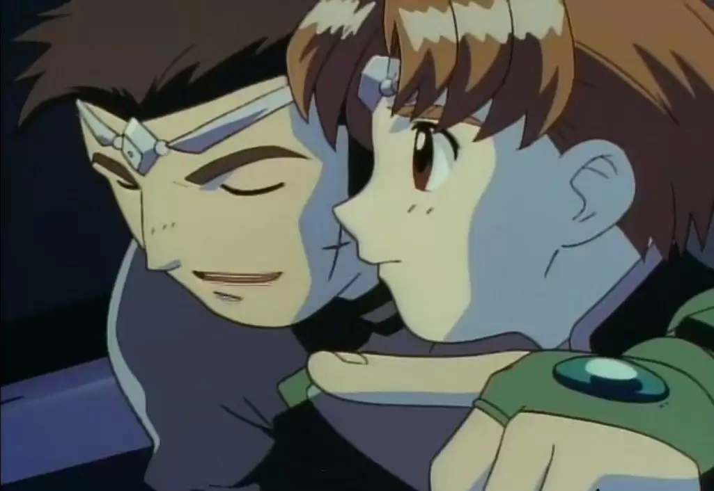 Banner of the Stars Seikai no Senki Battle Flag of the Stars 星界の戦旗 Производство: Япония Жанр: фантастика, боевик, приключения, романтика Тип: ТВ (13 эпизодов), 25 мин. Трансляция: c 14.04.2000 по 14.07.2000 Режиссёр: Нагаока Ясуси Автор оригинала: Мориока Хироюки В наличии все 13 эпизодов на 4 дисках. Вторая часть эпической космосаги о противостоянии человеческой империи Ав с другими народами галактики получилась у писателя Мориоки более собранной и цельной, нежели первая. Все происходящее тут не дробится на несколько составляющих, а соединено воедино, благодаря чему внимание не растрачивается на мелкие эпизоды и сценки, а полностью концентрируется на одном большом событии, которому и посвящен этот второй сериал. Закончив первую книгу на стадии зарождения межгалактической войны, Мориоки тем самым оставил для себя блестящую возможность написать продолжение, где все как раз и должно начаться с этой войны. Все так и начинается, но, что более важно, все так и продолжается. Второй сериал — это, без преувеличения, мощный военно-космический эпос, настоящая космическая опера с космолётами, межзвездными баталиями и прочей научно-фантастической романтикой. Главные герои первого сериала присутствуют, они все в сборе, но выполняют сугубо отмеченную сценарием роль. В данном случае не сюжет подстраивается под героев, а герои под сюжет. Во второй части весьма мало планетарных сцен, почти всё действие и все диалоги происходят в космосе, на корабле и, конечно же, во время баталий. Последние имеют очень своеобразную черту, даже две. Во-первых, они красивы, масштабны, продуманны, одним словом, захватывающи. Во-вторых, они абсолютно не драматичны. Идет война, взрываются корабли, кто-то погибает, кто-то выживает, но восприятие фокусируется не на конкретных кораблях и человечках, выполняющих чисто техническую роль, а на самой битве. Камера не захватывает раненых, она смотрит на флот издалека. Камера не показывает умирающих, она показывает карту боя. Камере не интересны события на одном из подбитых кораблей, ей интересна дискуссия адмиралов на мостике, которые, глядя на битву, спокойно и при возможности торжественно обсуждают ее течение, чем еще больше абстрагируют зрителя от любой драматической составляющей. Лиц и тел врагов не показывают вовсе: ни солдат на истребителях, ни адмиралов на флагмане. И, нужно признаться, это правильно. Сам по себе «Звёздный Флаг» — произведение героическое, несколько по-детски оформленное, без глубокой проработки большинства героев. В нем ни к чему драма, тут нужна зрелищность, а также ощущение того, что смотришь нечто увлекательное и сказочное. И все потому, что война в этом сериале — самоцель, не эпизод большой истории, как, например, в «Моей девушке» или «Стальном алхимике», а основная составляющая, призванная удерживать у экрана и, что самое главное, веселить или, если более корректно выразиться, увлекать, не напрягая смотрящего кровью и жестокостью. Так и получается, что все происходящее смахивает на игру в солдатики, но выглядит это красиво и феерически сказочно, нет никакого желания ругать автора за романтизацию военных действий, за его красивую и буйную фантазию. Намного интереснее откинуться и наблюдать за стратегами и их шагами, за всякими обманными маневрами, за главными героями, попавшими во всю эту кутерьму, но не потерявшими ни самоуважения, ни 