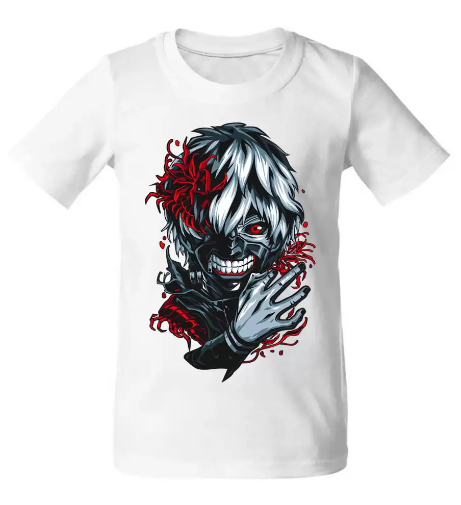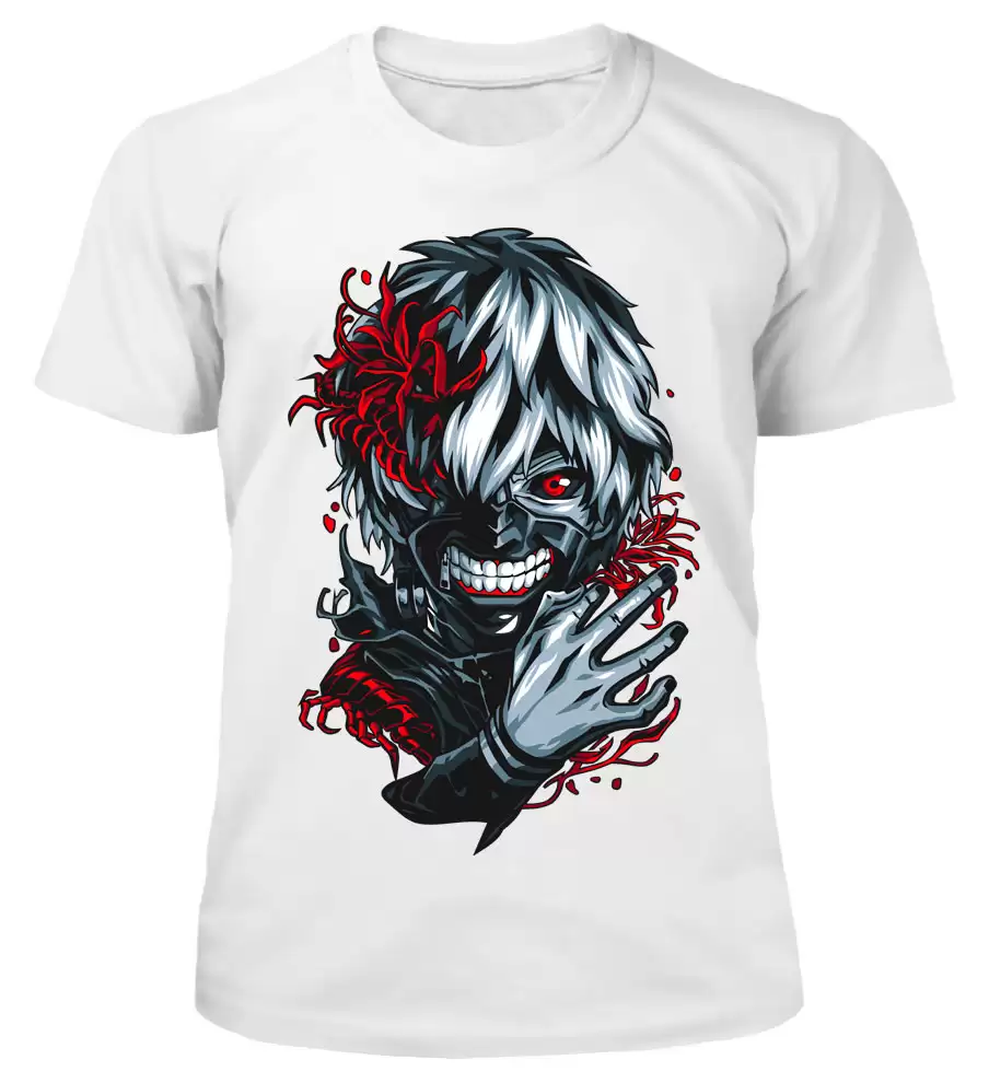 Футболка с ярким и детализированным принтом Кена Канэки – главного героя популярного аниме «Tokyo Ghoul». Созданная из качественных материалов, эта футболка обеспечит комфорт и долгий срок службы. Идеальный выбор для фанатов аниме и любителей стиля!