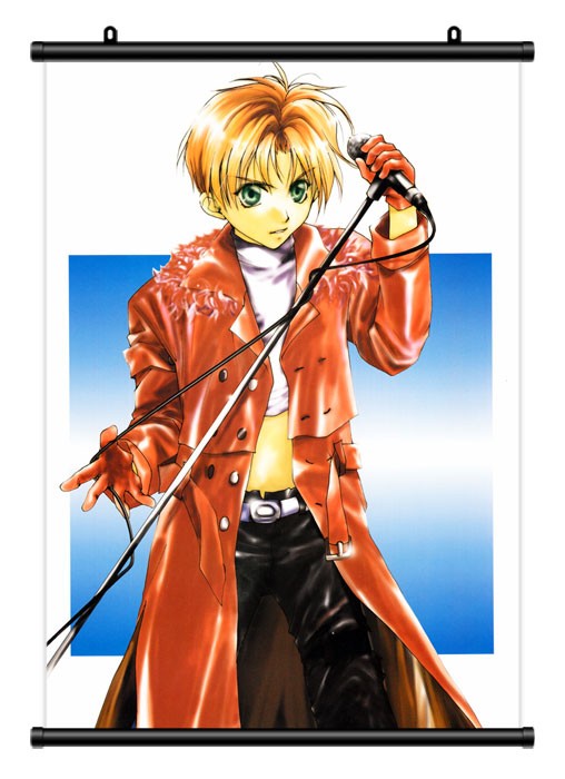 На тематическом плакате вы можете увидеть главного героя аниме Gravitation – Сиюти Синдо. Парень неплохо поет, так что у него обеспечено будущее на вершине поп-сцены. Вот, в один странный день, он встречается в другим героем писателем. Подобно самой странной истории между юношей и мужчиной пролетает искра! Так что у них завязываются отчасти дружеские, но по большей части – романтические отношения!