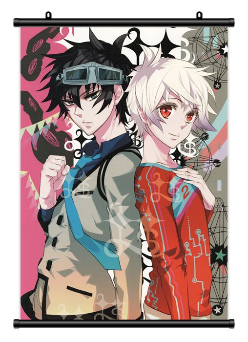 Тканевый плакат с двумя главными персонажами манги «Karneval». Она принесла известность своему создателю, Тои Миканаги. Это седзе-история о двух друзьях, когда-то живших вместе. Най и Кароку были неразлучны, но внезапно Кароку пропадает, ни сказав другу ни слова. Мальчик берет единственную вещь, оставшуюся от друга – его браслет и отправляется в город, чтобы провести собственное расследование.