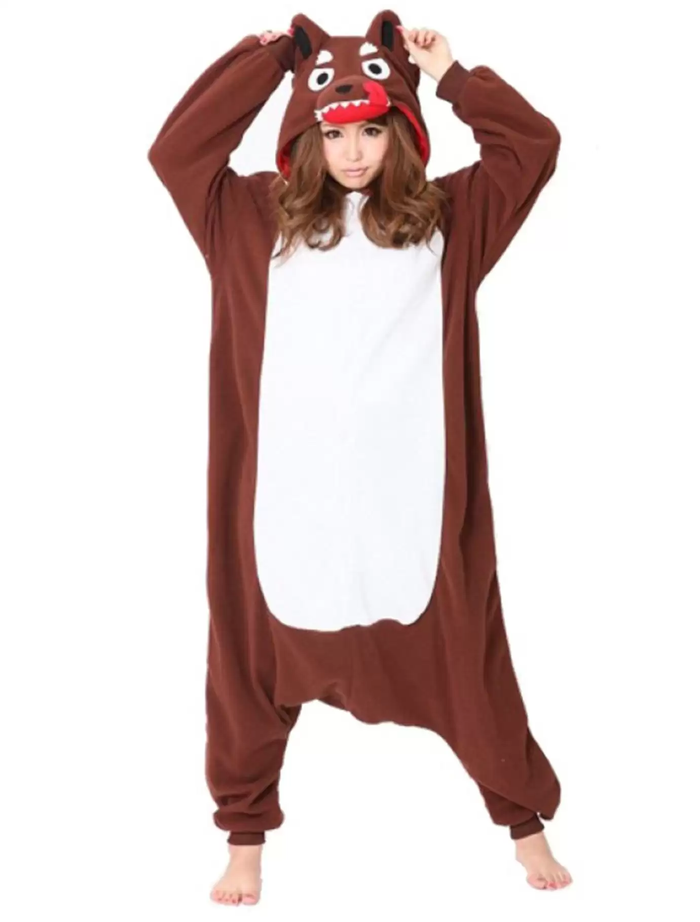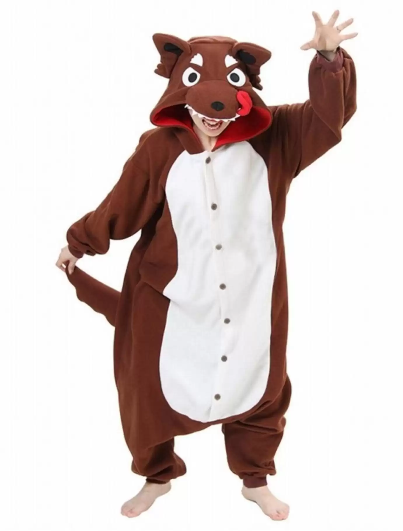 В нашем интернет-магазине можно купить кигуруми Волк Бурый (Brown Wolf) по доступной цене. Костюм сделан из качественного коричневого и белого материала, который приятен на ощупь и безопасен для кожи. Капюшон выполнен в виде головы волка с зубами и ушками. Покрой кигуруми свободный и комфортный, что удобно для людей любой комплекции. Вы можете у нас купить кигуруми для детей и взрослых.