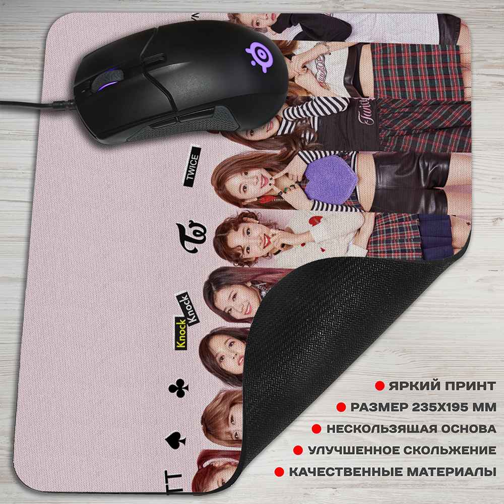Погрузитесь в мир K-Pop вместе с ковриком для мышки с участницами популярной группы Twice - Дважды! Яркий и стильный дизайн с изображениями любимых артисток позволит вам насладиться работой за компьютером в уютной обстановке. Высококачественная поверхность обеспечивает плавное скольжение мыши, а прочная основа предотвращает скольжение коврика на столе. Украсьте своё рабочее место и поддержите своих кумиров с помощью этого стильного аксессуара!