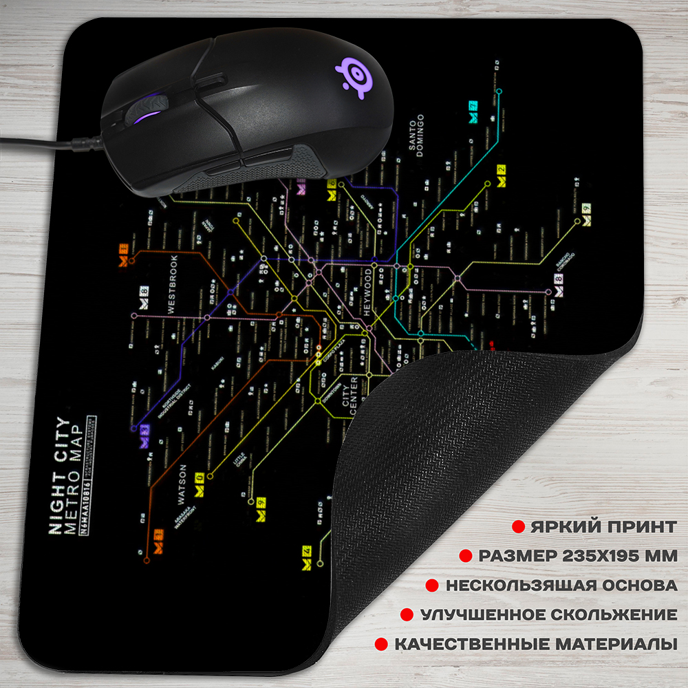 Фотография большая Коврик для мышки прямоугольный Cyberpunk 2077 - Night City Metro Map из аниме и манги Cyberpunk 2077 / Киберпанк 2077