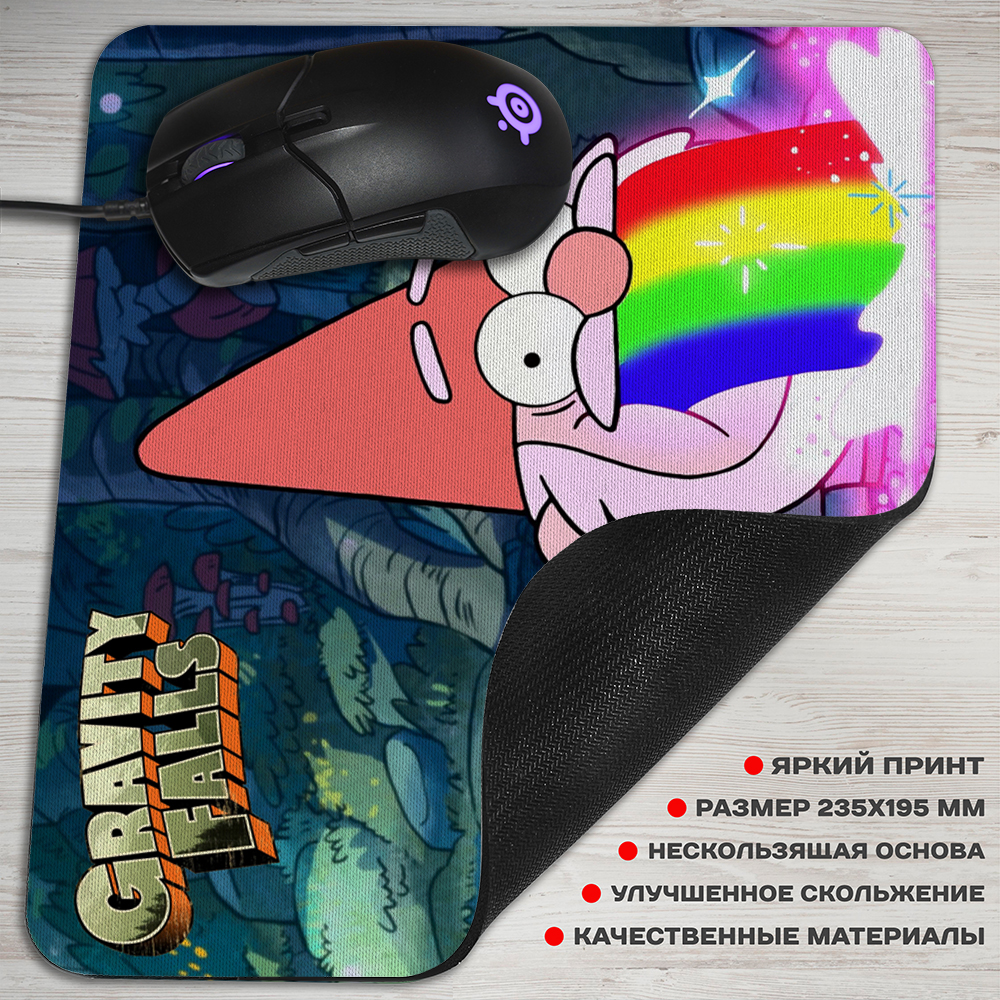 Коврик для мышки прямоугольной формы с уникальным дизайном из популярного мультсериала "Гравити Фолз". Изображение гнома добавит яркости на вашем рабочем столе, а также защитит поверхность от царапин и потертостей. Прочная основа обеспечивает отличное сцепление с поверхностью, а также плавное скольжение мыши. Идеальный выбор для всех поклонников мультсериала и тех, кто ценит качество и стиль.
