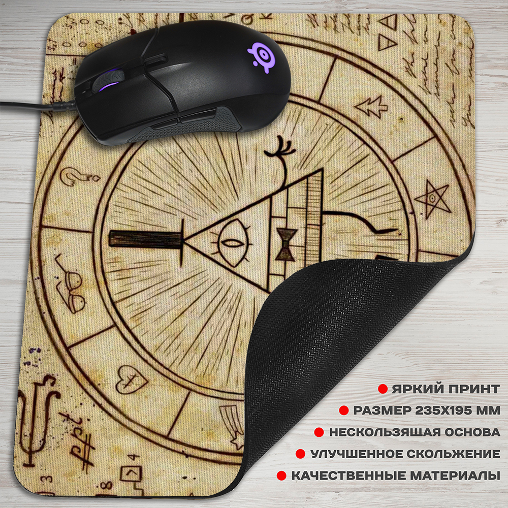 Коврик для мышки прямоугольной формы с уникальным дизайном, вдохновленным популярным мультсериалом "Гравити Фолз". На коврике изображено колесо Билла из Дневника №2, что делает его отличным подарком для поклонников этого мультфильма. Коврик обеспечивает отличное скольжение мыши, что позволяет комфортно работать или играть за компьютером. Привлекательный дизайн и высокое качество материалов делают этот коврик идеальным выбором для всех поклонников "Гравити Фолз".