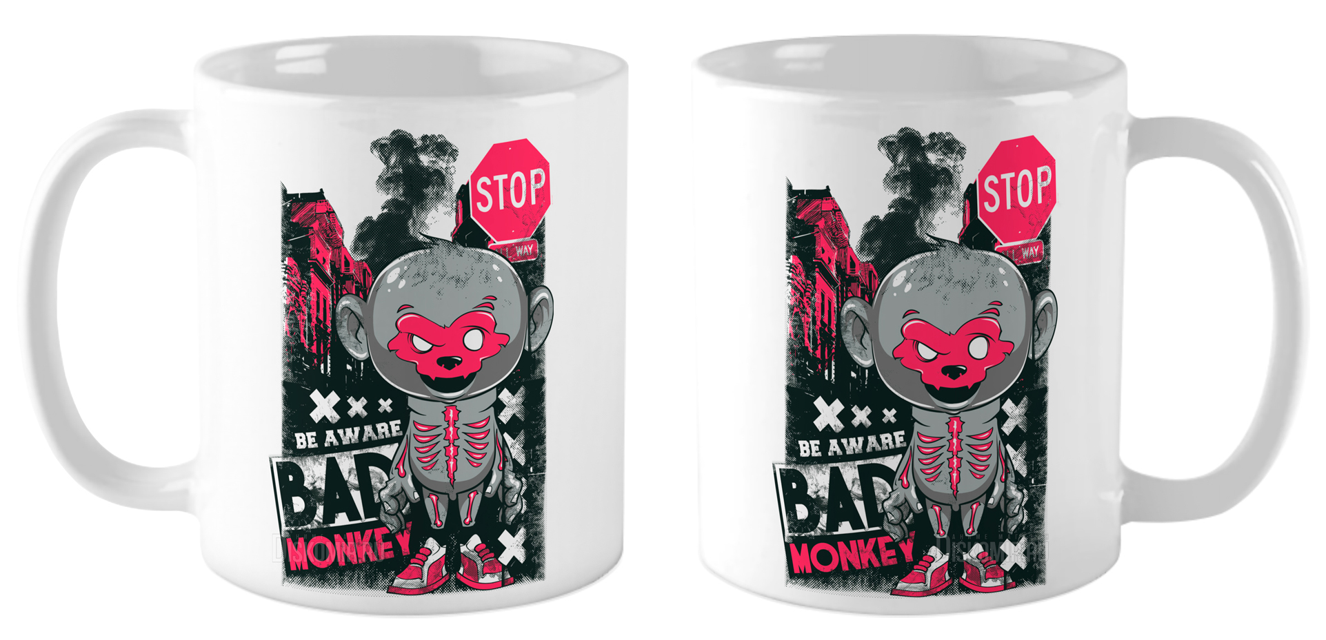 Керамическая кружка белого цвета объёмом 330 мл с ярким принтом «Be Aware Bad Monkey». Отличный выбор для любителей оригинальных аксессуаров и стильного дизайна.