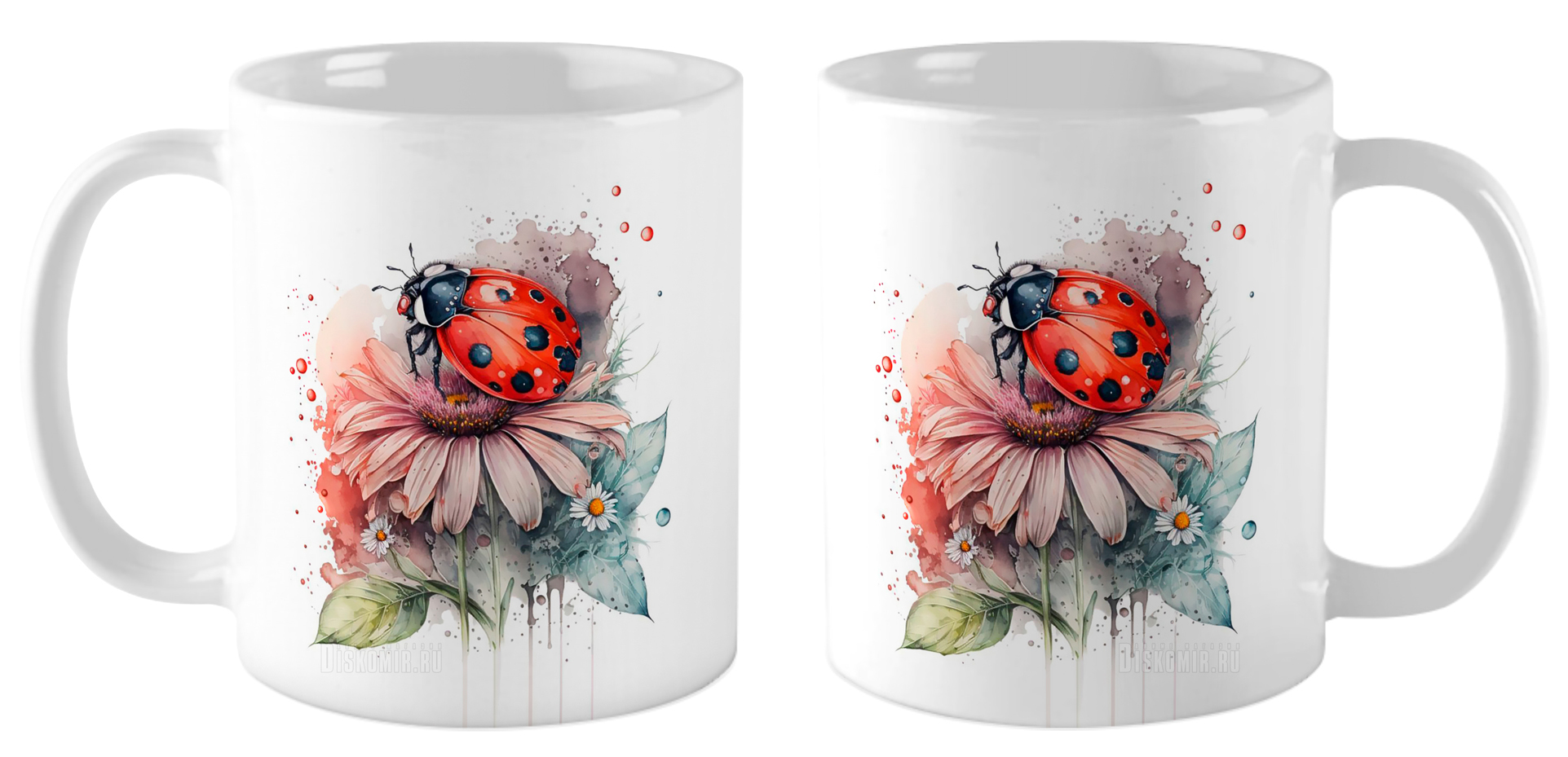 Кружка Божья коровка на ромашке / Акварель