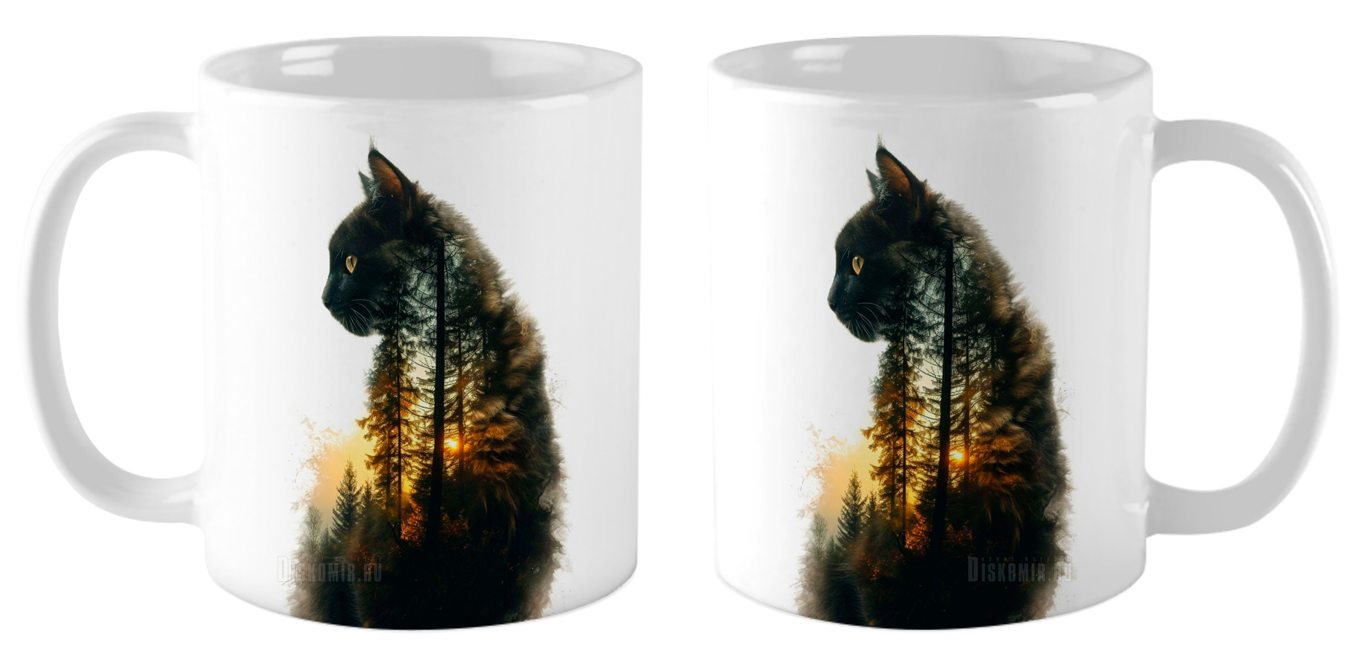 Откройте для себя магию природы с керамической кружкой «Черная кошка» объемом 330 мл! Эта элегантная белая кружка украшена завораживающим изображением черной кошки, гармонично переплетающейся с величественным хвойным лесом в технике двойной экспозиции. Каждый глоток вашего любимого напитка будет напоминать о загадочности и красоте дикой природы, создавая атмосферу уюта и вдохновения. Идеально подходит для чая, кофе или горячего шоколада, эта кружка станет не только практичным аксессуаром, но и стильным акцентом в вашем интерьере или прекрасным подарком для любителей животных и природы!