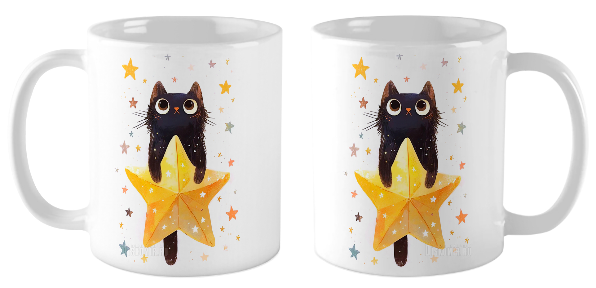 Кружка Черный котик и звезды