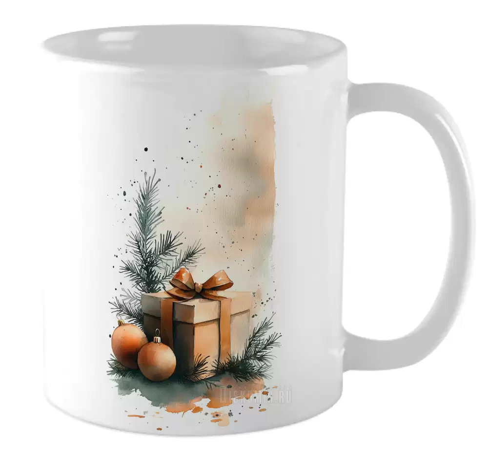 Кружка Елка и подарки / Акварель