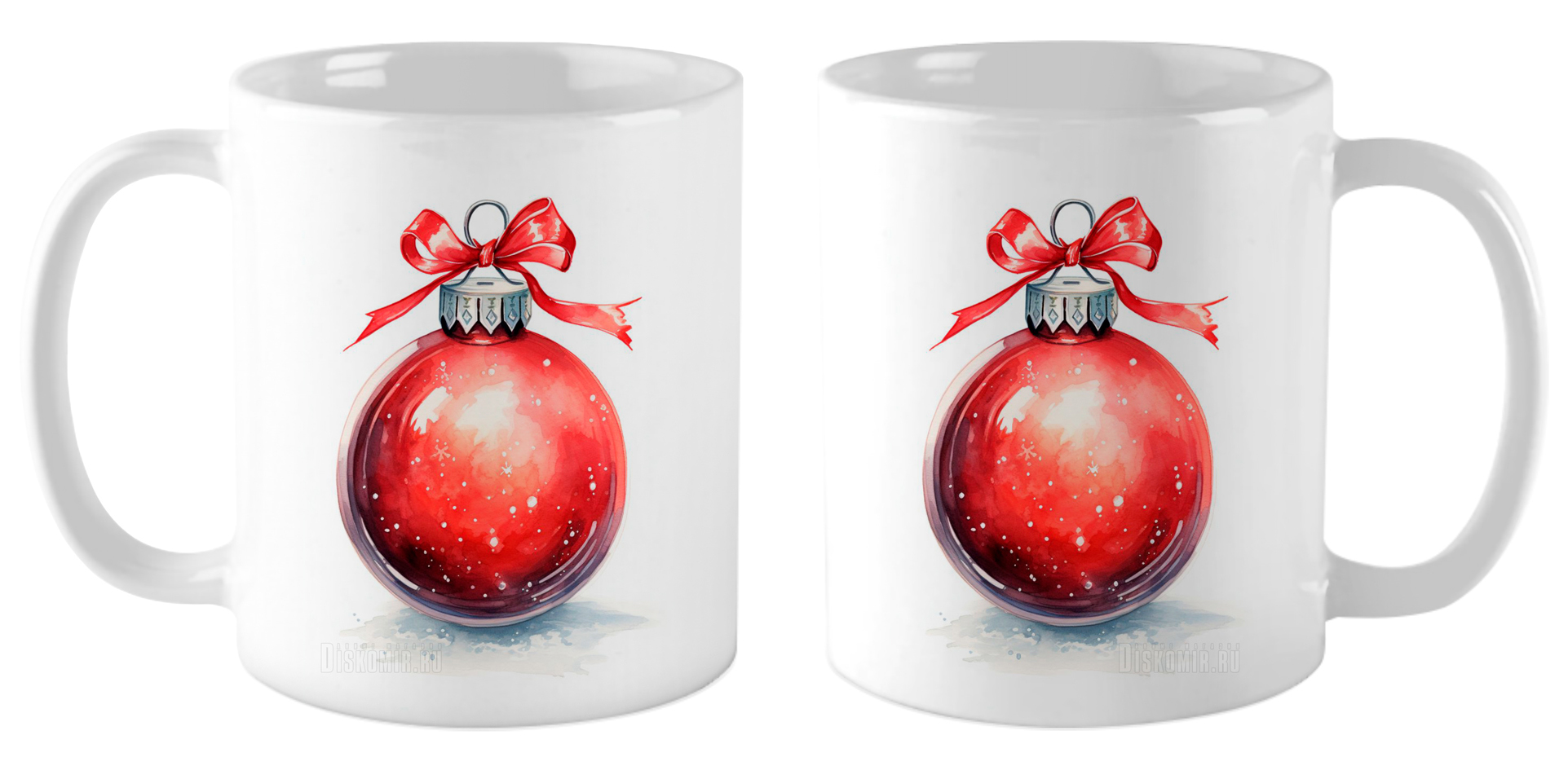 Кружка Елочный шар красный / Акварель