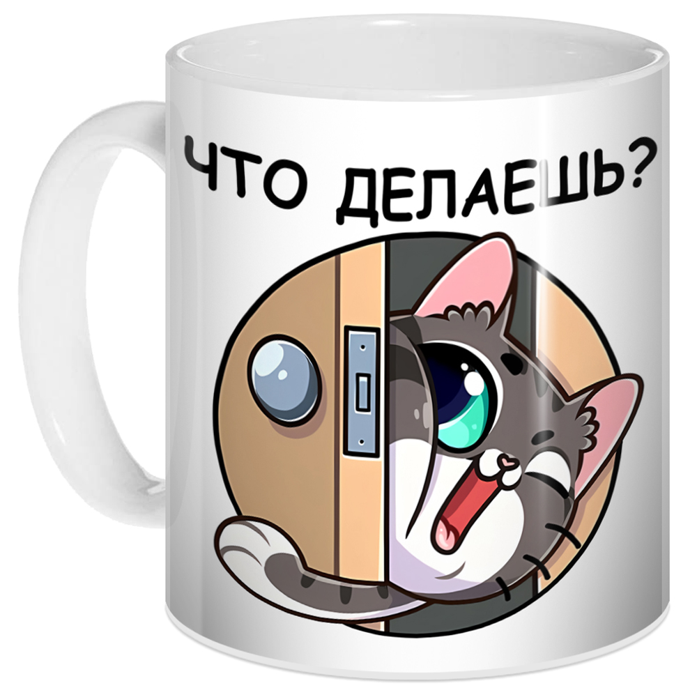Просыпаясь утром и наливая в нее свой любимый напиток, вы не сможете устоять перед взглядом этого милого котика, спрашивающего: "Что делаешь?". Кружка из высококачественной керамики с оригинальным дизайном станет отличным подарком для любителей кошек и уютных домашних вечеров. Подарите себе порцию хорошего настроения каждый день с этой чудесной кружкой!