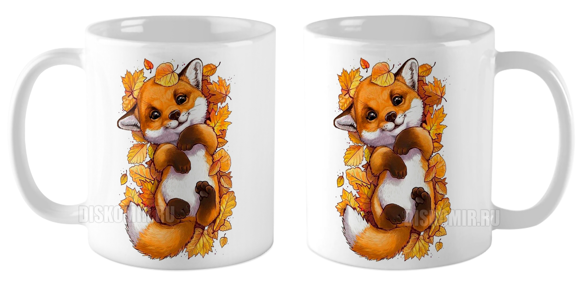 Кружка Лисенок в листьях