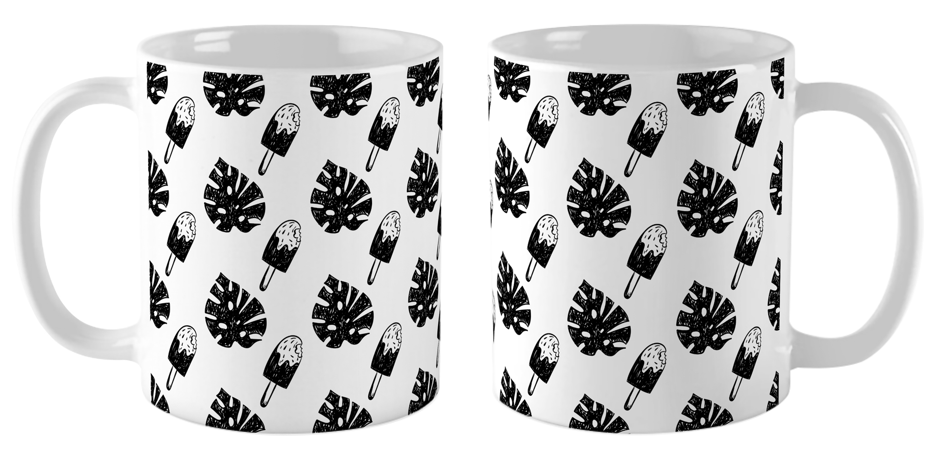 Кружка Листья монстеры и эскимо / Монохромный паттерн №5