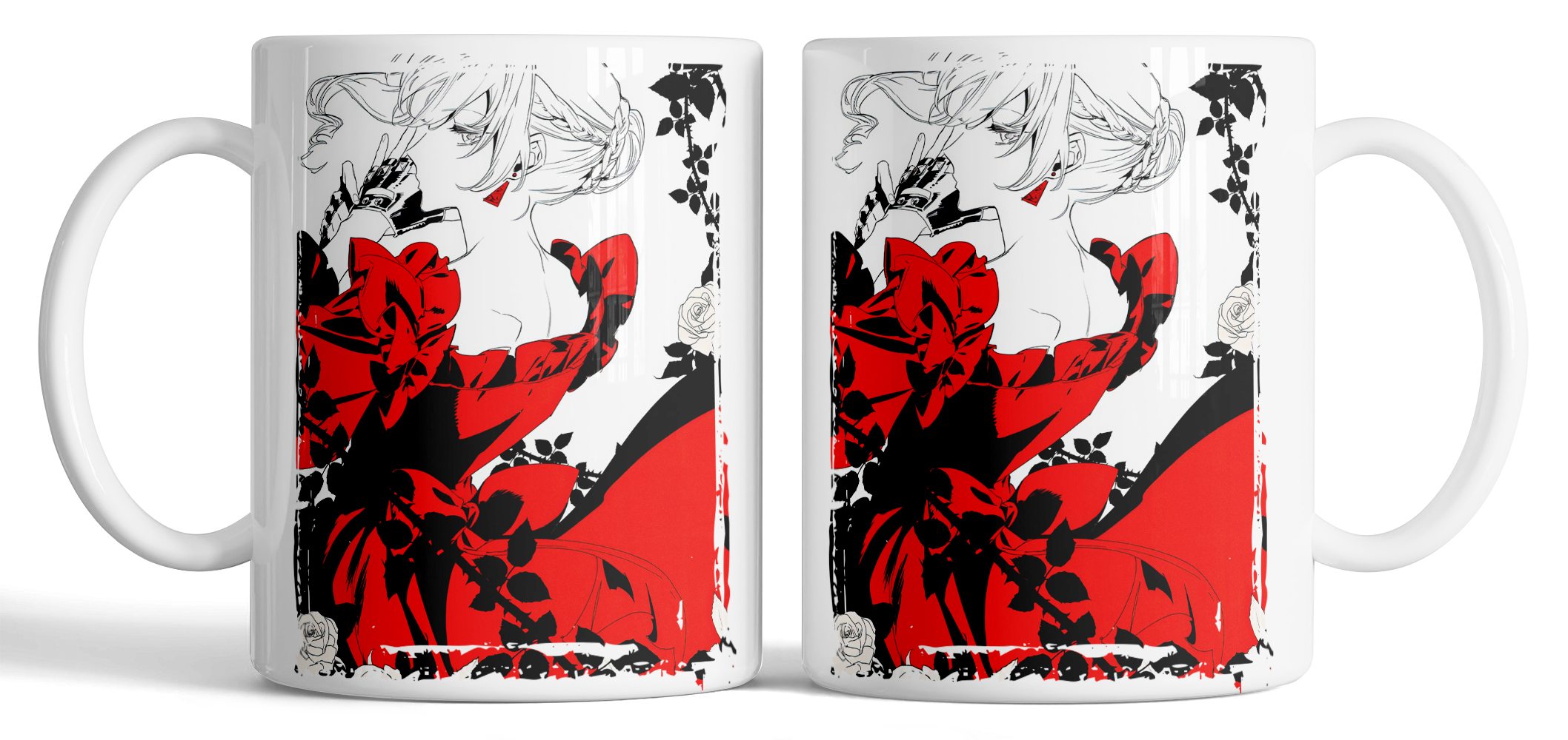 Керамическая кружка по мотивам аниме Могу я попросить ещё кое-что? с изображением Скарлет эль Вандимион. Контрастный чёрно-бело-красный дизайн с цветочными элементами подчёркивает элегантность и силу героини. Стильная графика и качественная печать делают кружку эффектным аксессуаром и отличным подарком для поклонников аниме.