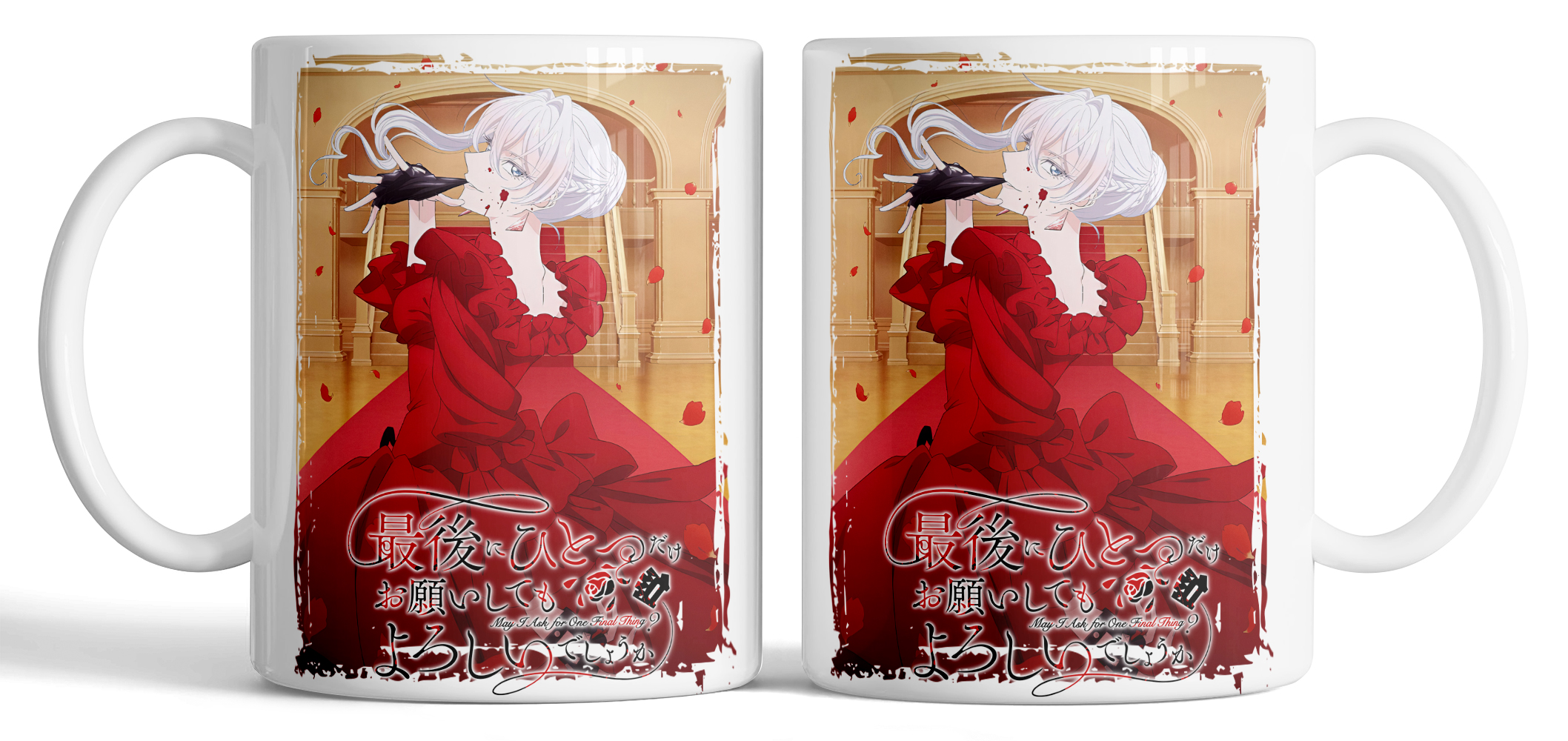 Керамическая кружка по мотивам аниме Могу я попросить ещё кое-что? с изображением Скарлет эль Вандимион. Элегантный образ в роскошном красном платье с декоративными элементами создаёт выразительную и утончённую композицию. Насыщенные цвета и качественная печать делают кружку стильным аксессуаром и отличным подарком для поклонников аниме.
