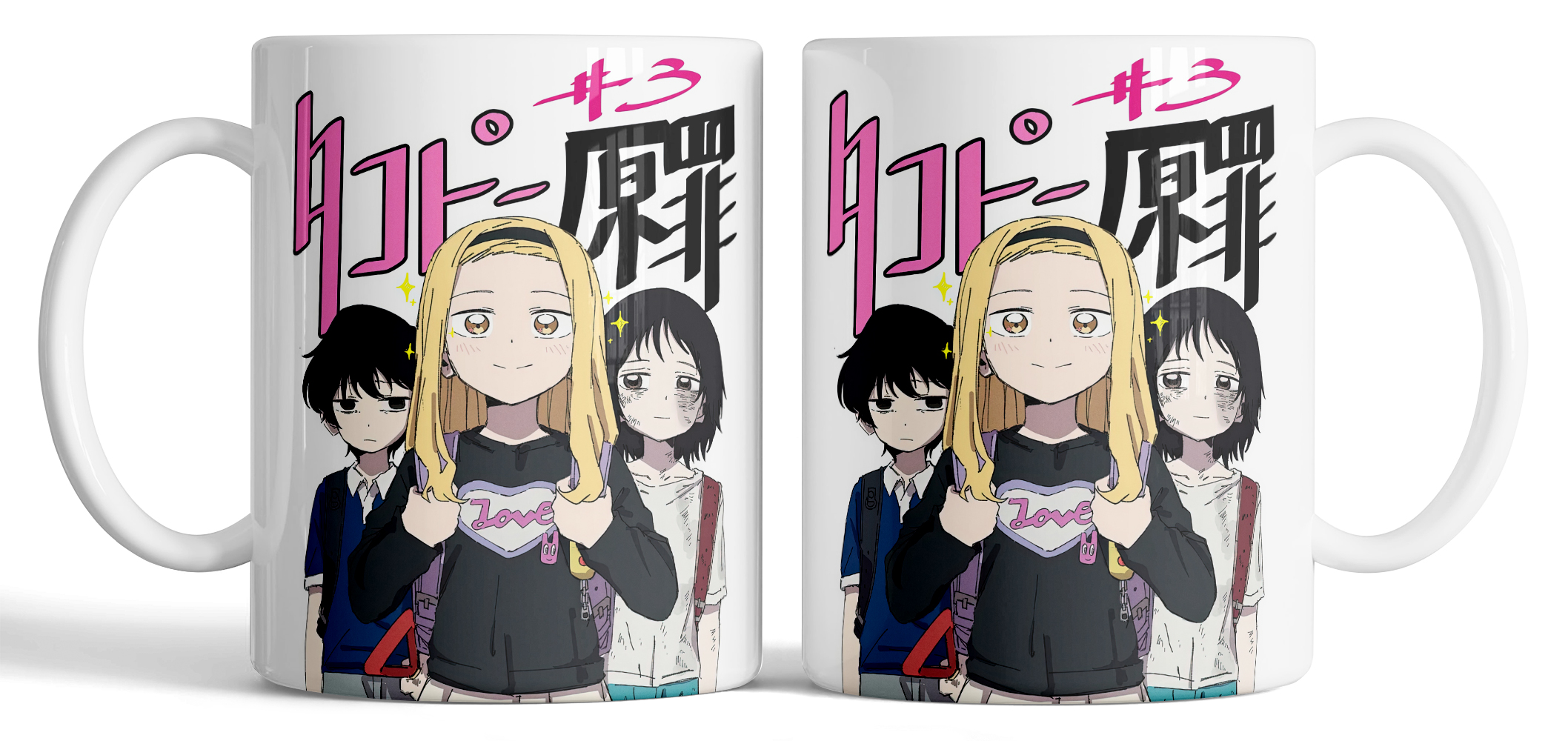 Керамическая кружка по мотивам манги Такопи и его оригинальный грех с изображением Сидзука Кудзё, Марина Кирию и Наоки Азума. Лаконичный аниме-стиль и узнаваемые персонажи передают атмосферу истории. Качественная печать делает кружку стильным аксессуаром и отличным подарком для поклонников манги.