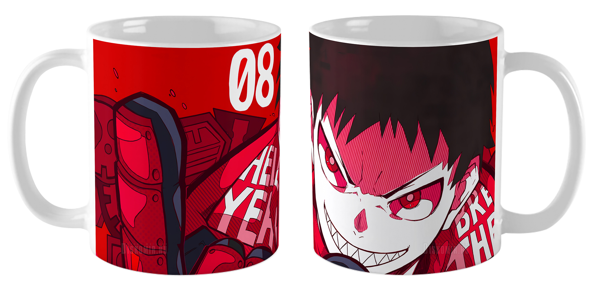 Фотография большая керамической кружки из аниме Пламенная бригада пожарных / Enen no Shouboutai / Fire Force / Fire Brigade of Flames / Огненная бригада пожарных / Пожарная бригада