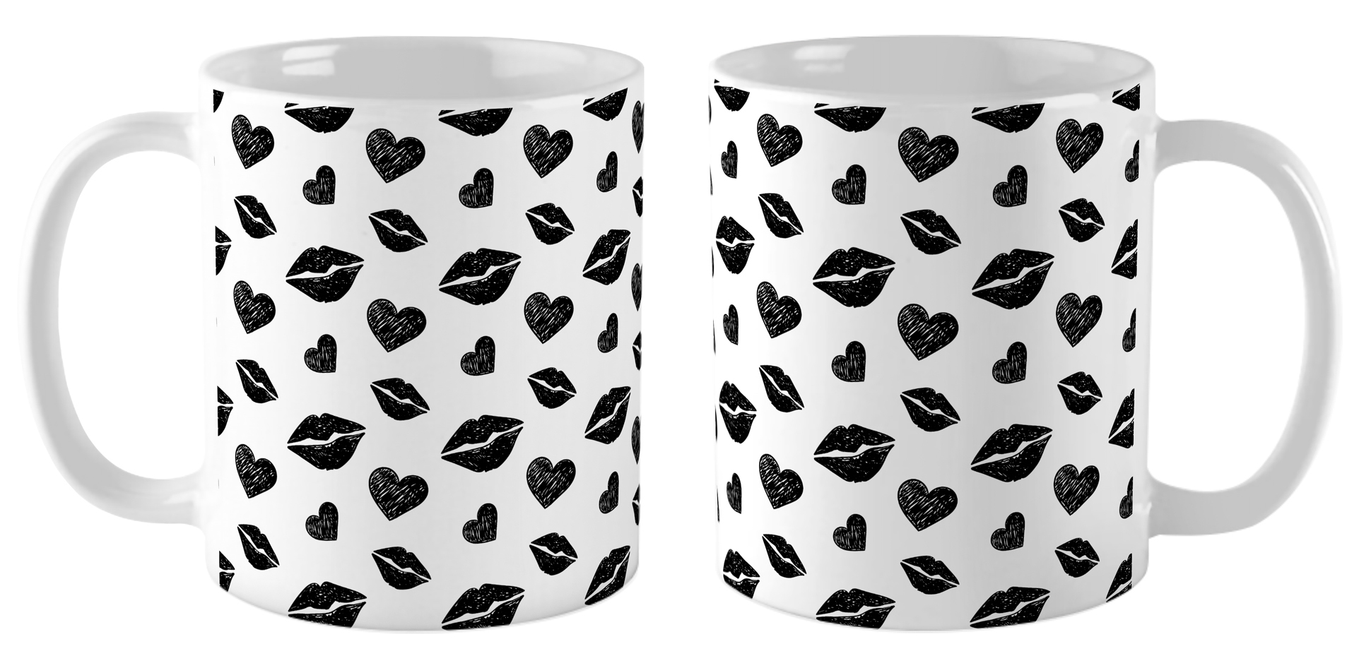 Кружка Поцелуи и сердечки / Монохромный паттерн №9