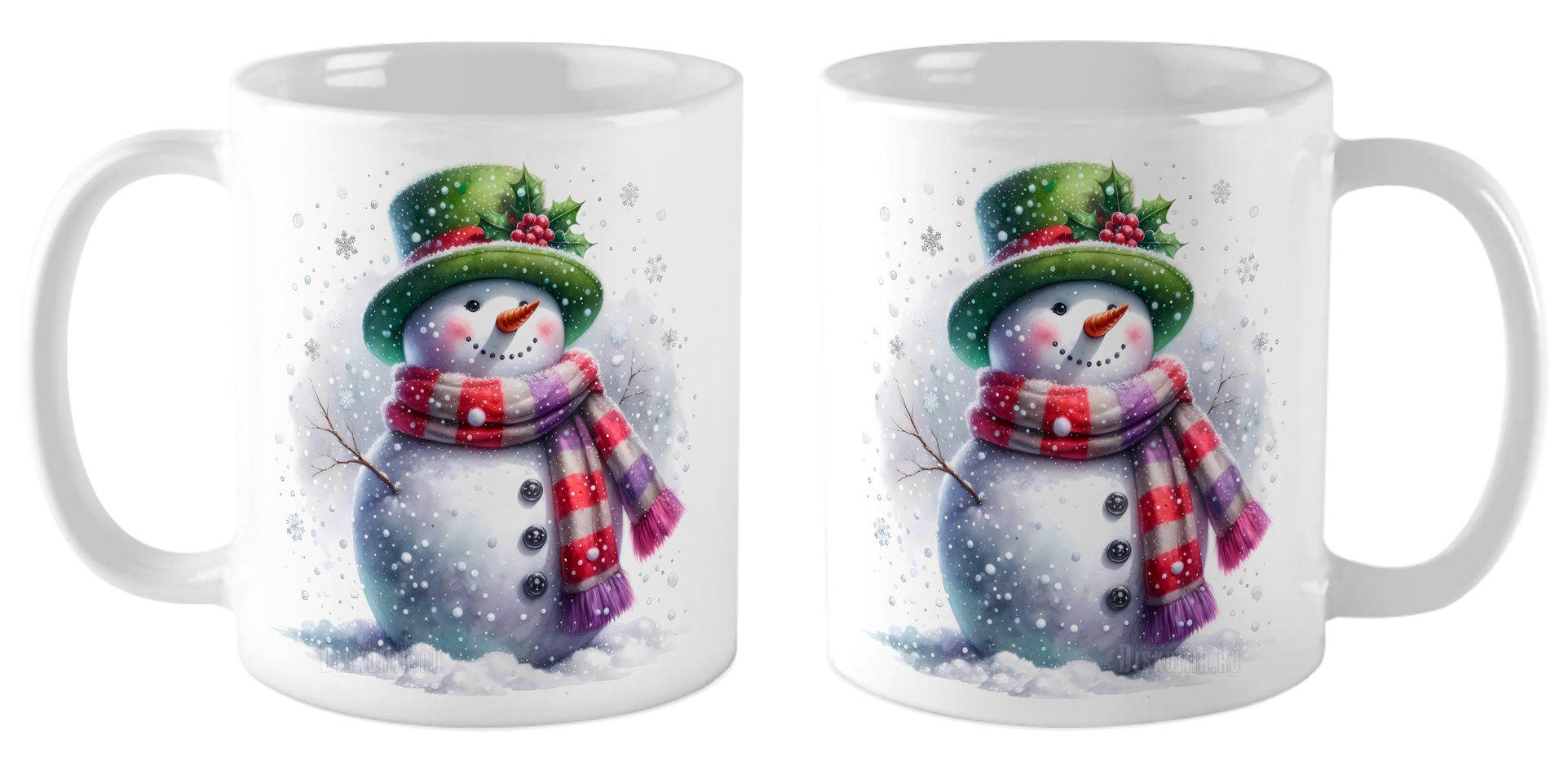 Кружка Снеговик в шляпе / Аварель