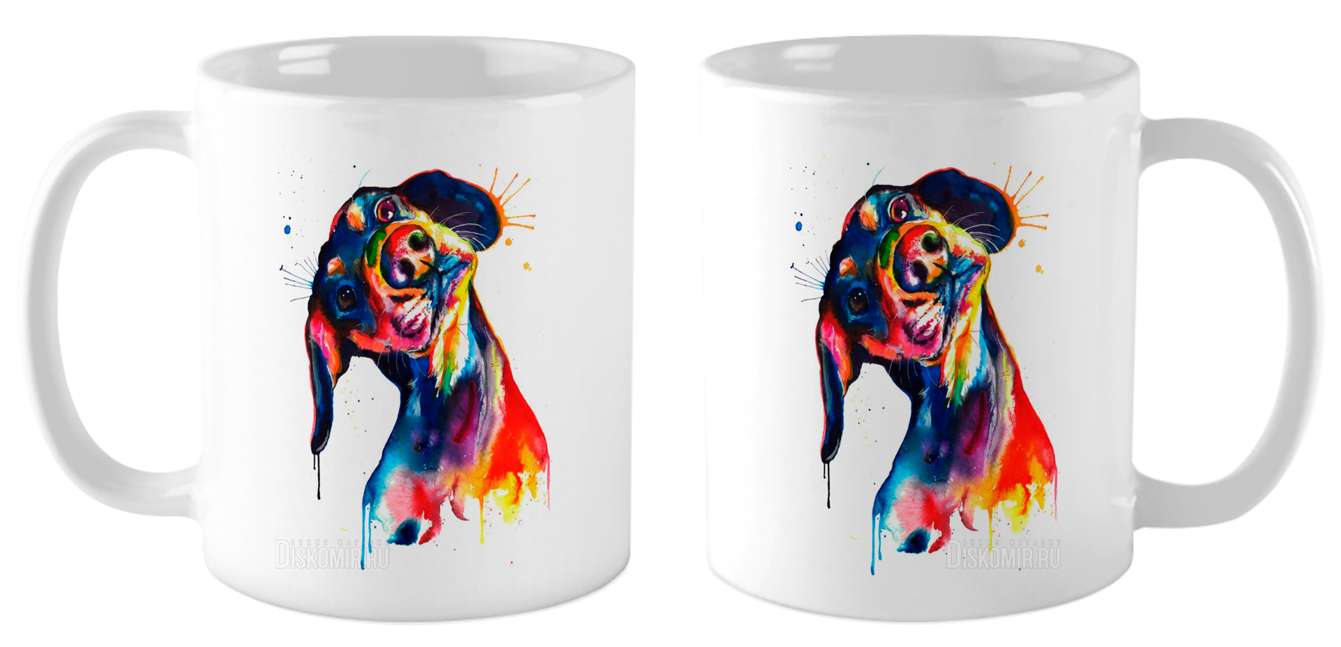 Керамическая кружка белого цвета, объём 330 мл, с изображением таксы, выполненным в технике акварельной росписи. Прекрасный подарок для любителей собак и ценителей искусства. Можно мыть в посудомоечной машине и использовать в микроволновой печи.