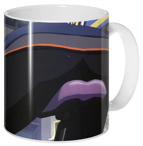 Белая керамическая кружка с ярким, насыщенным рисунком.