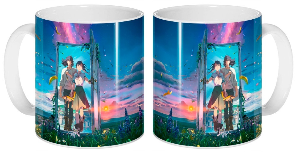 Фотография большая керамической кружки из аниме Судзумэ, закрывающая двери / Suzume no Tojimari / Suzume's Locking-Up / Судзумэ закрывает двери