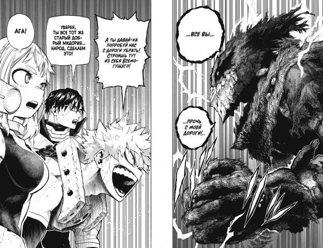 Неужели Все За Одного победил, а дух Неукротимого сломлен? Кажется, только сейчас герои начинают прозревать по-настоящему, но способны ли они выдержать столь резкий переход на новый уровень? Или всю тяжесть этого нового мира взвалит себе на плечи один Идзуку Мидория?