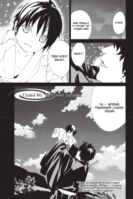 Ято все еще томится в плену у Идзанами в подземном мире. Хиёри и Юкинэ узнают, что вызволить его оттуда поможет истинное имя. Неужели они так мало знают о своем друге и его прошлом, что не способны даже на такую малость?.. Настоящий Ято — это жизнерадостный оболтус, к которому привыкли Хиёри и Юкинэ, или же безжалостный палач, который долго убивал людей на пару с Бездомной по приказу человека, которого Ято зовет отцом?