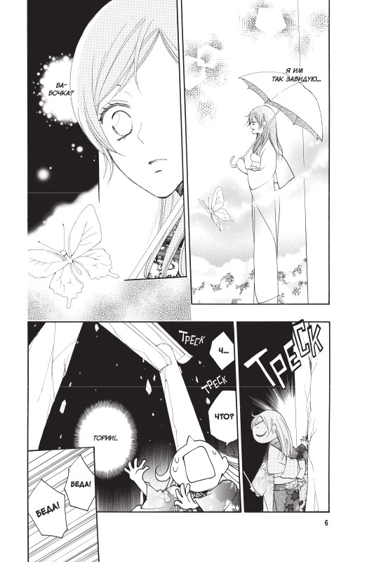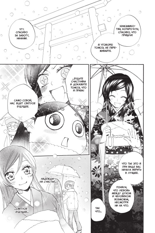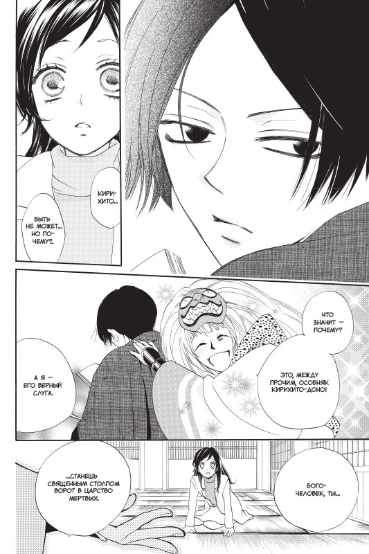 Уж сколько раз твердили миру — отношения между духом и человеком грозят обернуться множеством бед! И все же Болотная Химэмико, влюбившаяся в смертного по имени Котаро, верит, что им повезет. Нанами всячески поддерживает подругу и хочет помочь влюбленным, обвенчав их в храме Микагэ. Но, конечно, без неприятностей не обходится: к Химэмико сватается другой дух, Драконий Карп Нисики, который не терпит отказов...