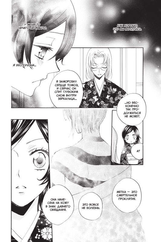 Несмотря на случившееся при первой встрече недопонимание, Болотная Химэмико и принц Нисики все же договариваются о смотринах. Но Котаро не желает терять возлюбленную и, заручившись помощью Драконьего царя, тоже отправляется на болото Инунаки. Что же будет? Действительно ли человеку предначертано быть с человеком, а духу — с духом?.. Беда не приходит одна: Нанами, которая должна провести свадебную церемонию, ведет себя крайне странно, и Томоэ начинает подозревать неладное...