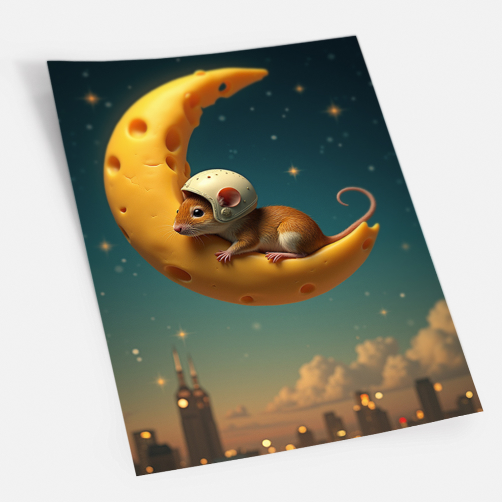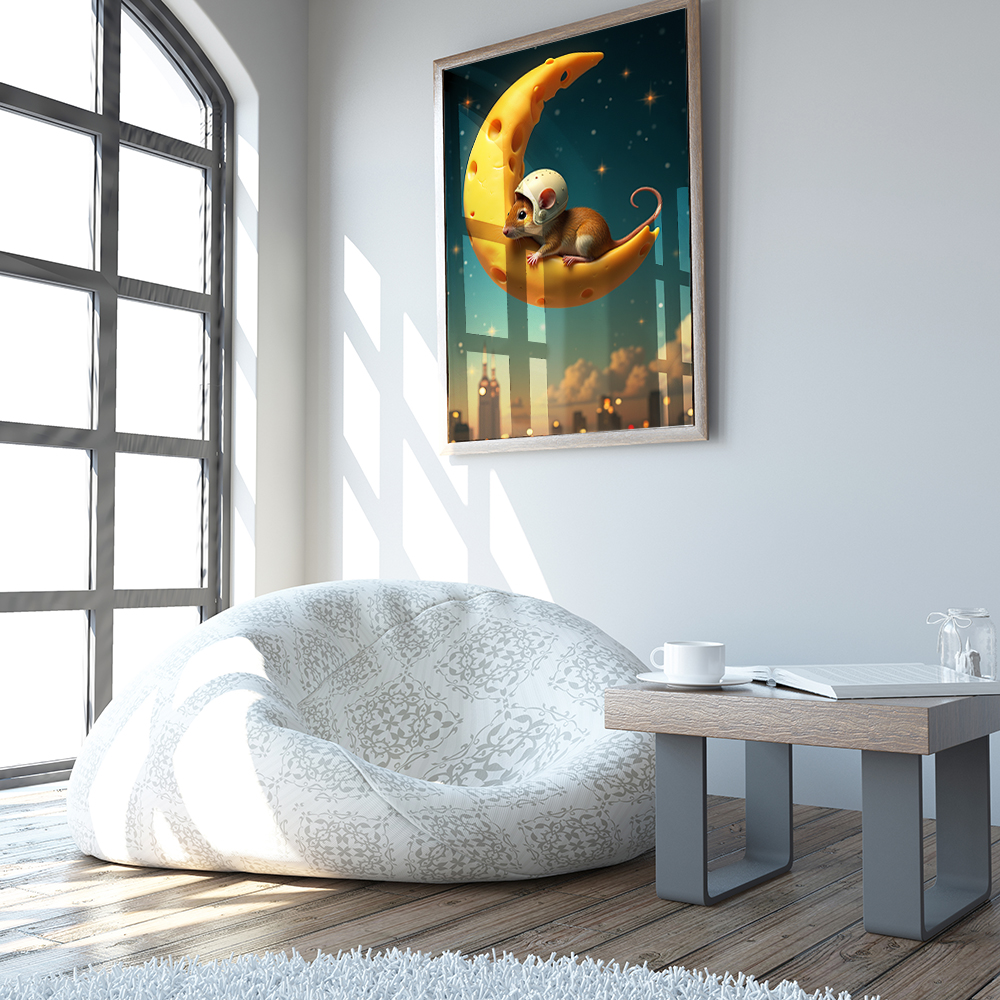 Плакат бумажный NeuroArt Сырная луна и мышь постер интерьерный No.027