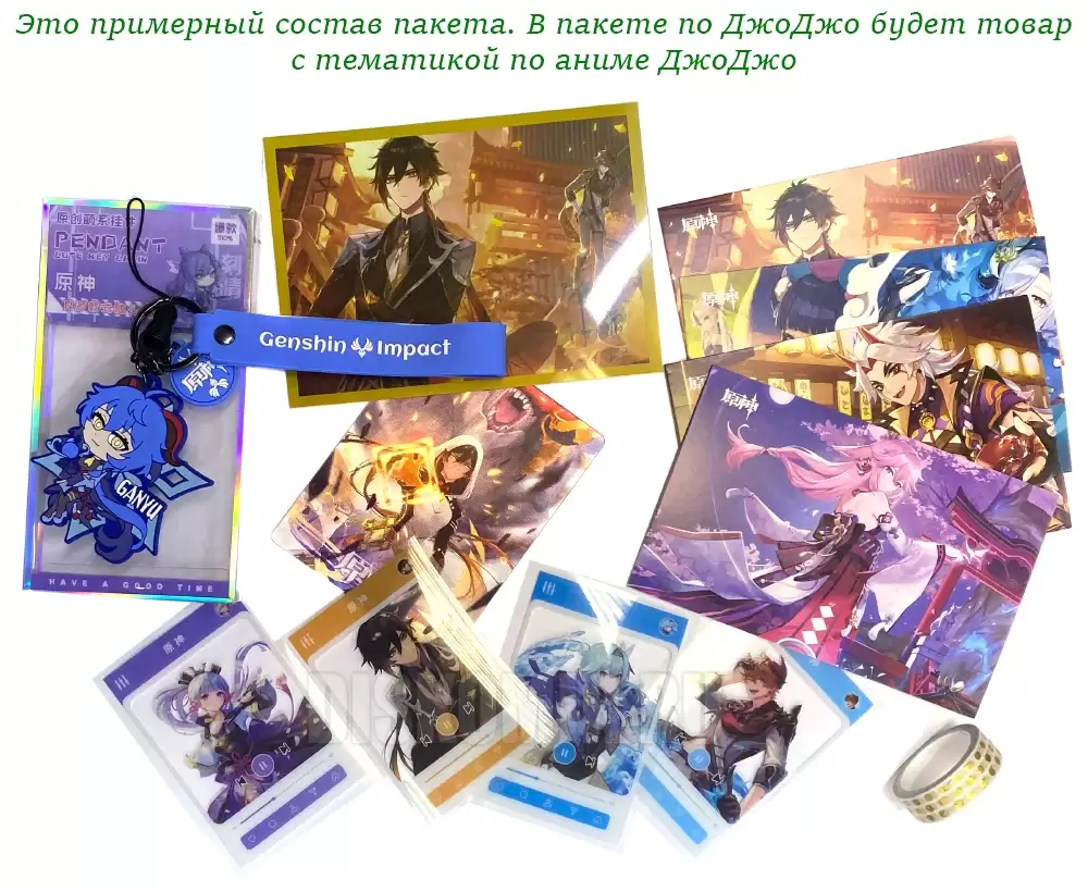 В каждом пакете находятся разные товары. Узнать состав можно только после покупки и вскрытия пакета. Пример того что находится в одном из вскрытых пакетов на фото.