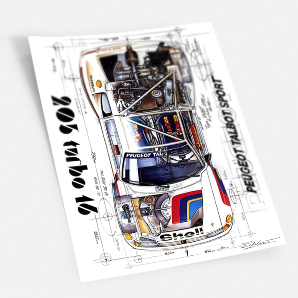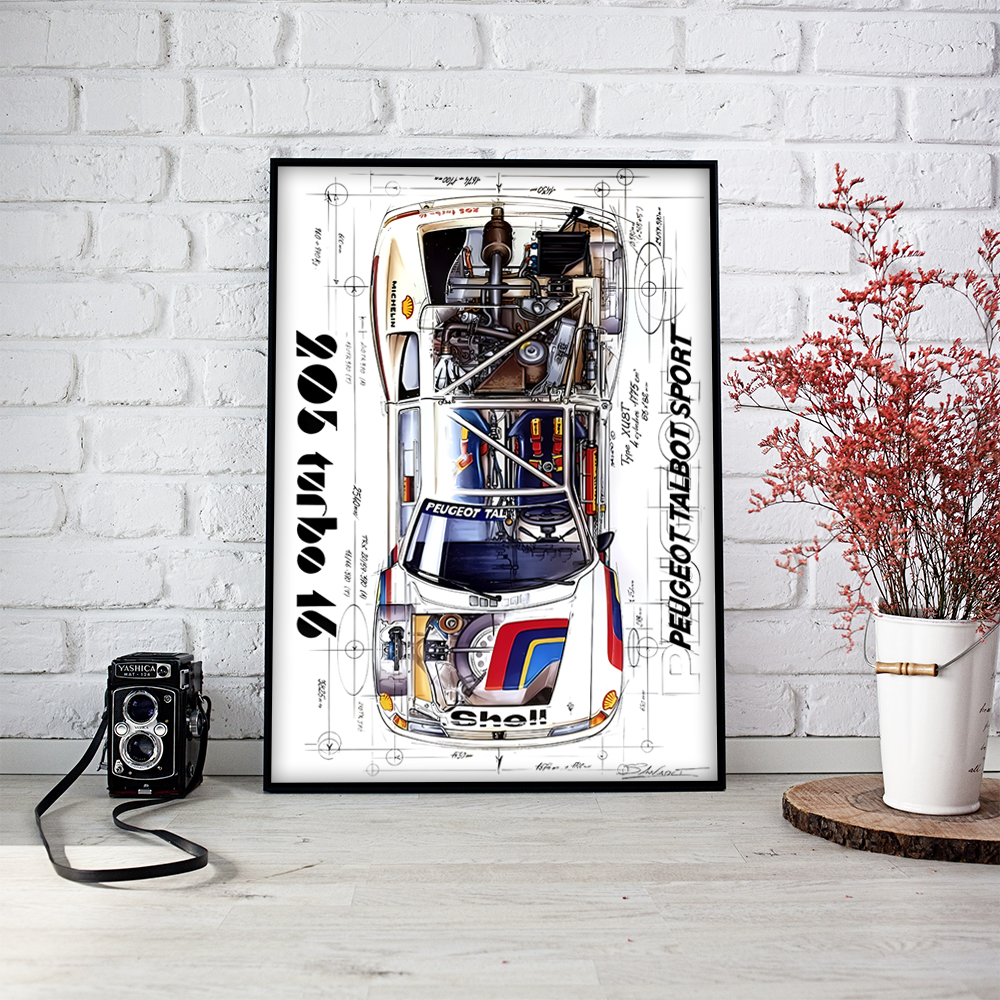 Постер Peugeot 205 Turbo 16 Talbot Sport - идеальное украшение для стены любого автолюбителя. Этот стильный плакат воплощает в себе дух гонок и азарта, передавая всю мощь и динамику легендарного автомобиля Peugeot 205 Turbo 16. Отличное качество печати и яркие цвета делают этот постер прекрасным дополнением к интерьеру гаража, кабинета или гостиной. Подарите себе или своим близким незабываемые эмоции с помощью этого уникального плаката!