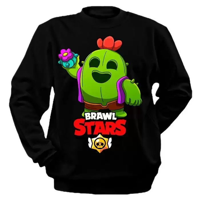 Толстовка из игры Бравл Старс с персонажем Спайк – это не только удобная, но еще и стильная одежда, которая отлично подойдет для спорта и отдыха в прохладное время года. Мы предлагаем вам новый эксклюзивный дизайн для этой франшизы. Вы можете выбрать толстовку белого или черного цвета. Толстовки, изготовленные из 100%-ого хлопка, обладают всеми достоинствами, характерными для этого натурального материала. Теплые, комфортные кофты приятно носить, они на долгое время сохраняя свою первоначальную форму и яркий, насыщенный цвет.