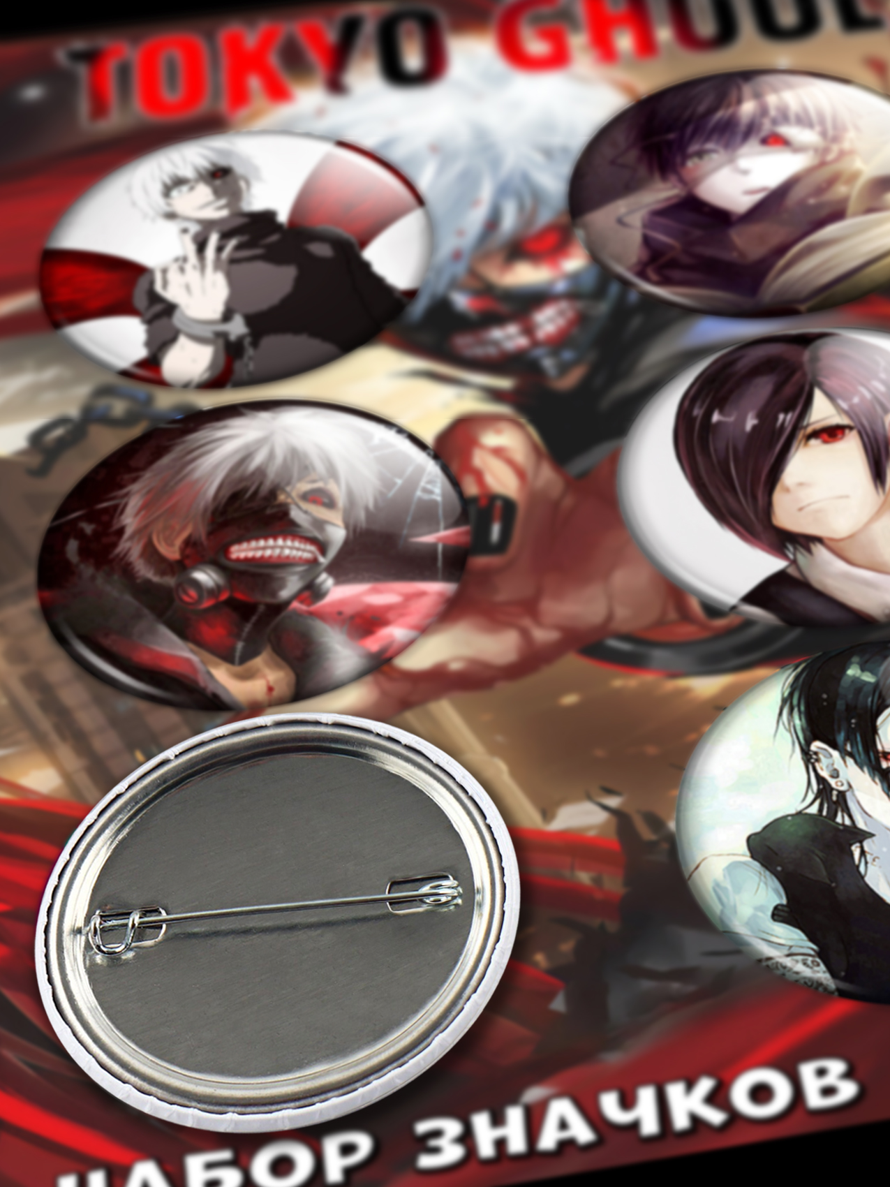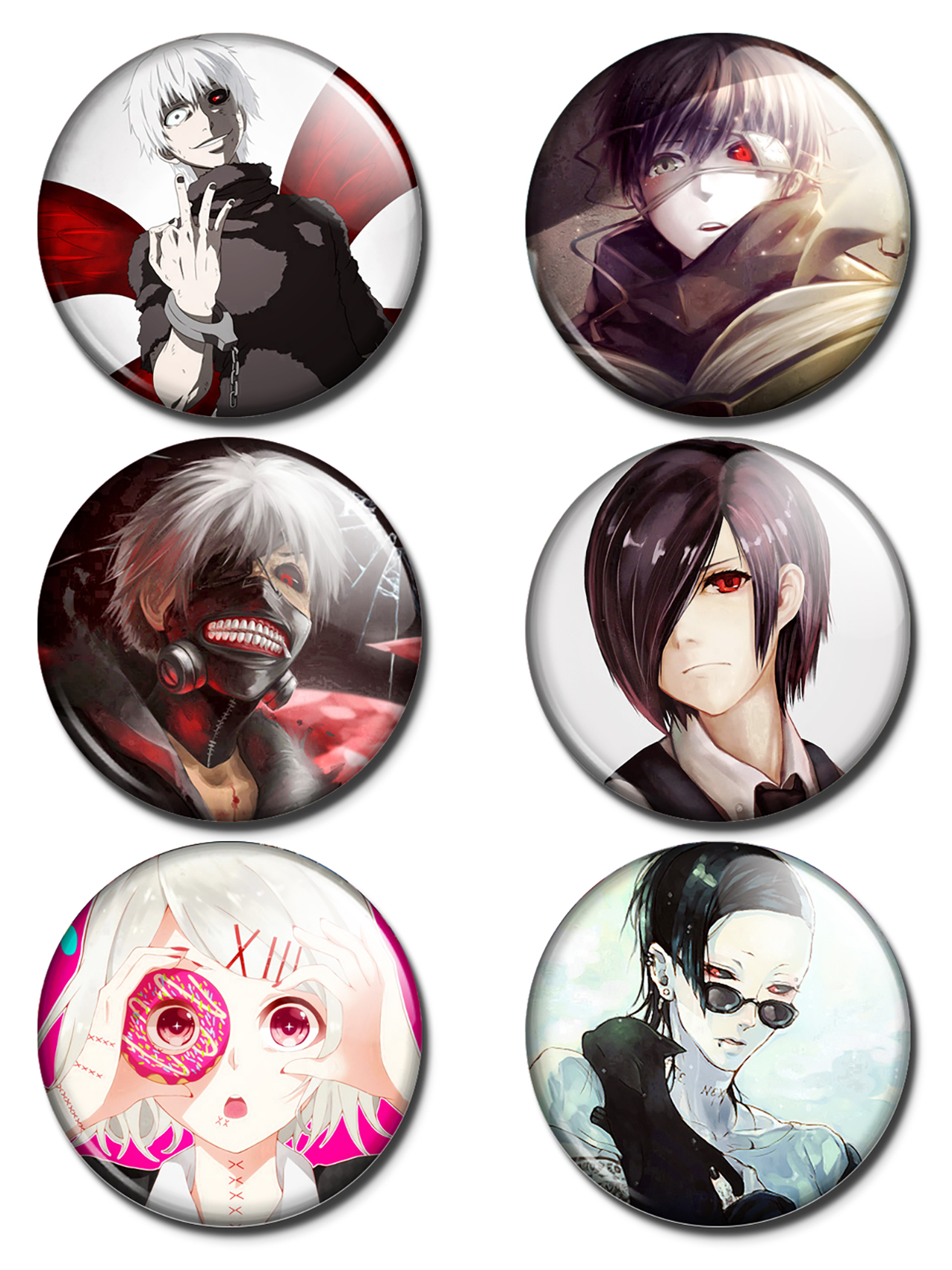 Значки с персонажами из аниме Токийский гуль набор 6 штук