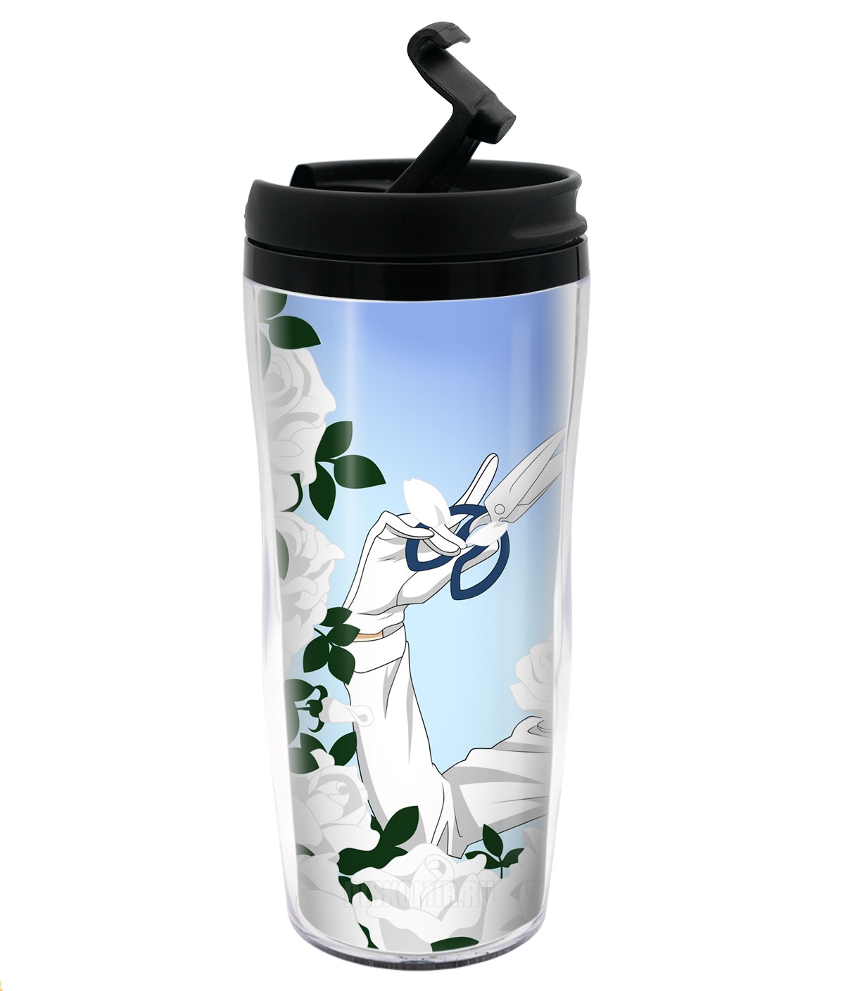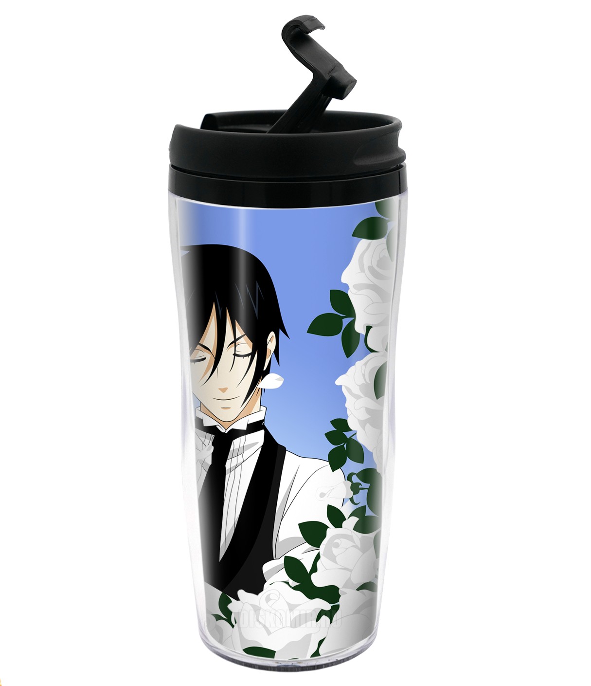 Фотография большая Термокружка пластиковая Темный Дворецкий с Белыми Розами 350 мл. из аниме Темный дворецкий / Kuroshitsuji / Black Butler / Демон-дворецкий