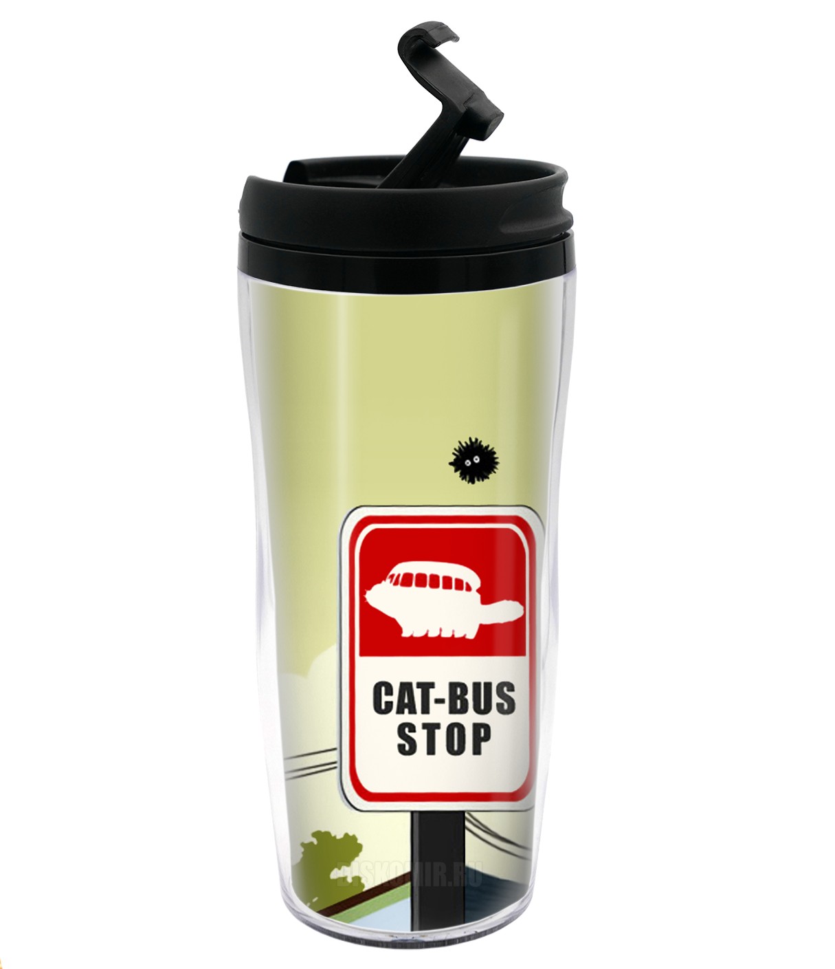 Фотография большая Термокружка пластиковая Тоторо Cat-Bus Stop 350 мл. из аниме Тоторо / Мой сосед Тоторо / My Neighbor Totoro / Tonari no Totoro