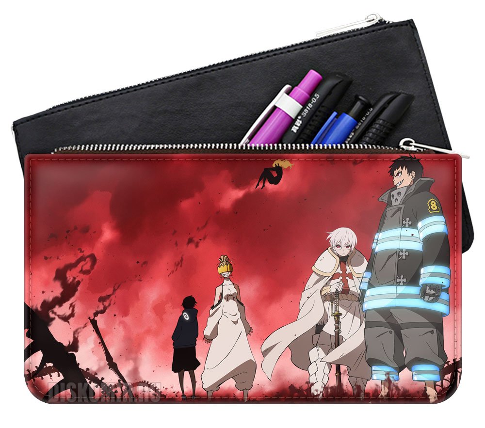 Фотография большая Пенал кожзам с героями аниме "Fire Force" из аниме и манги Пламенная бригада пожарных / Enen no Shouboutai / Fire Force / Fire Brigade of Flames / Огненная бригада пожарных / Пожарная бригада