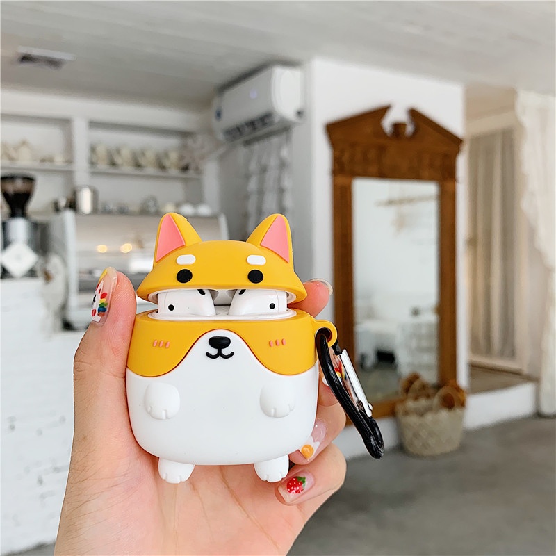 Чехол противоударный в виде Корги. Этот оригинальный чехол станет потрясающим решением для защиты наушников от любых повреждений, загрязнений и царапин. Аксессуар изготовлен приятного на ощупь силикона и повторяет оригинальную форму контейнера Airpods. Противоскользящая поверхность предотвращает выпадение чехла из руки, а специальная амортизирующая конструкция, разработанная для поглощения ударов в корпус, позволит вам не беспокоиться о возможных падениях вашего кейса на землю.