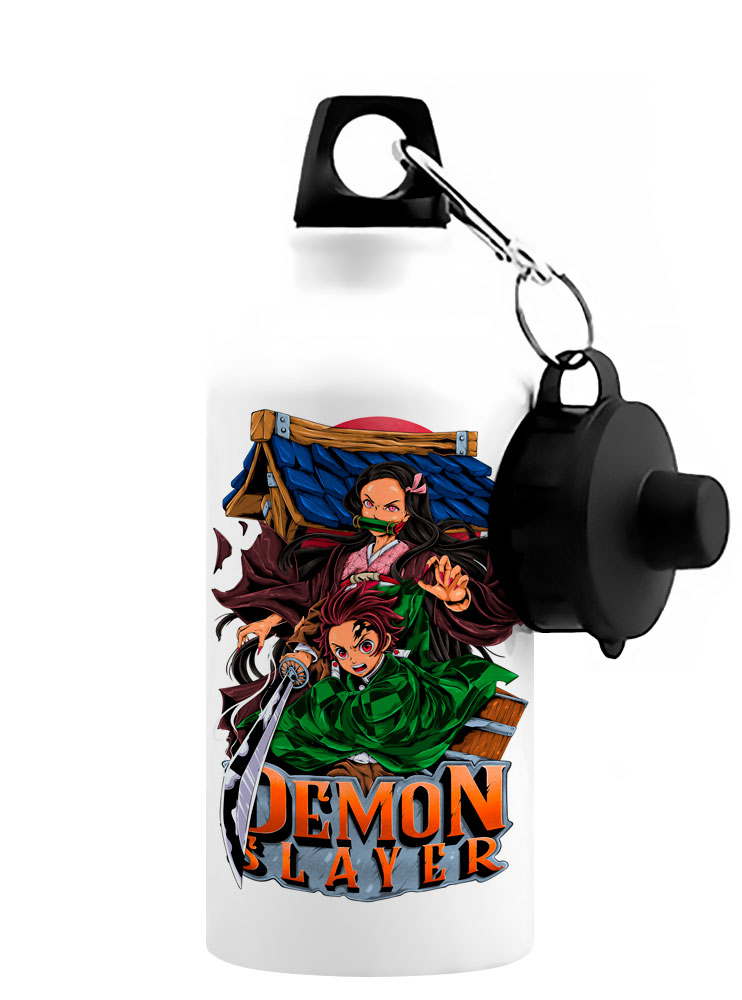 Фотография большая Спортивная бутылка для воды Клинок, рассекающий демонов - Тандзиро и Нэдзуко из аниме Клинок, рассекающий демонов / Demon Slayer / Kimetsu no Yaiba / Blade of Demon Destruction