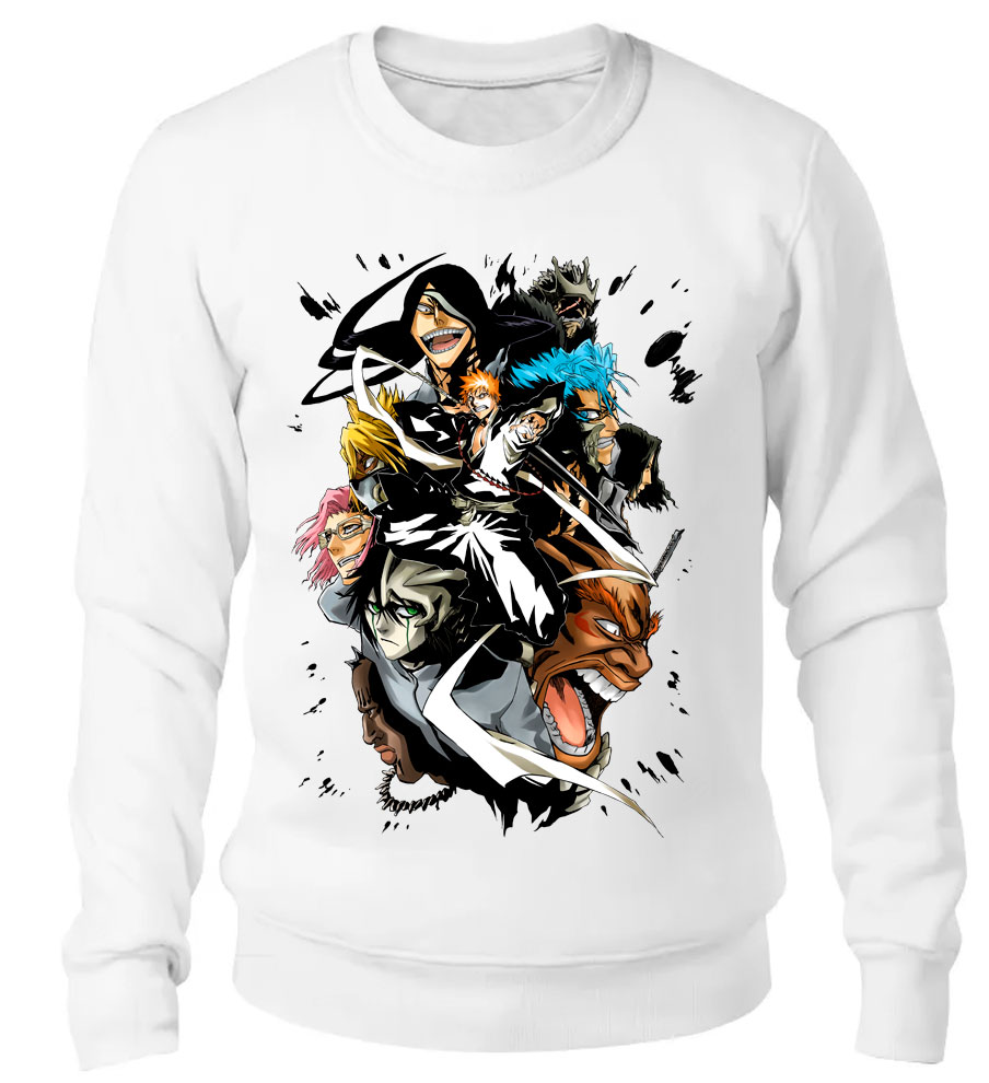 Толстовка с персонажами из аниме "Bleach" - это универсальный и стильный элемент гардероба для любителей японской анимации. Толстовка имеет удобный крой и изготовлена из высококачественного материала, который обеспечивает комфорт в носке. Эта толстовка - отличный выбор для тех, кто ищет удобный и модный элемент гардероба.