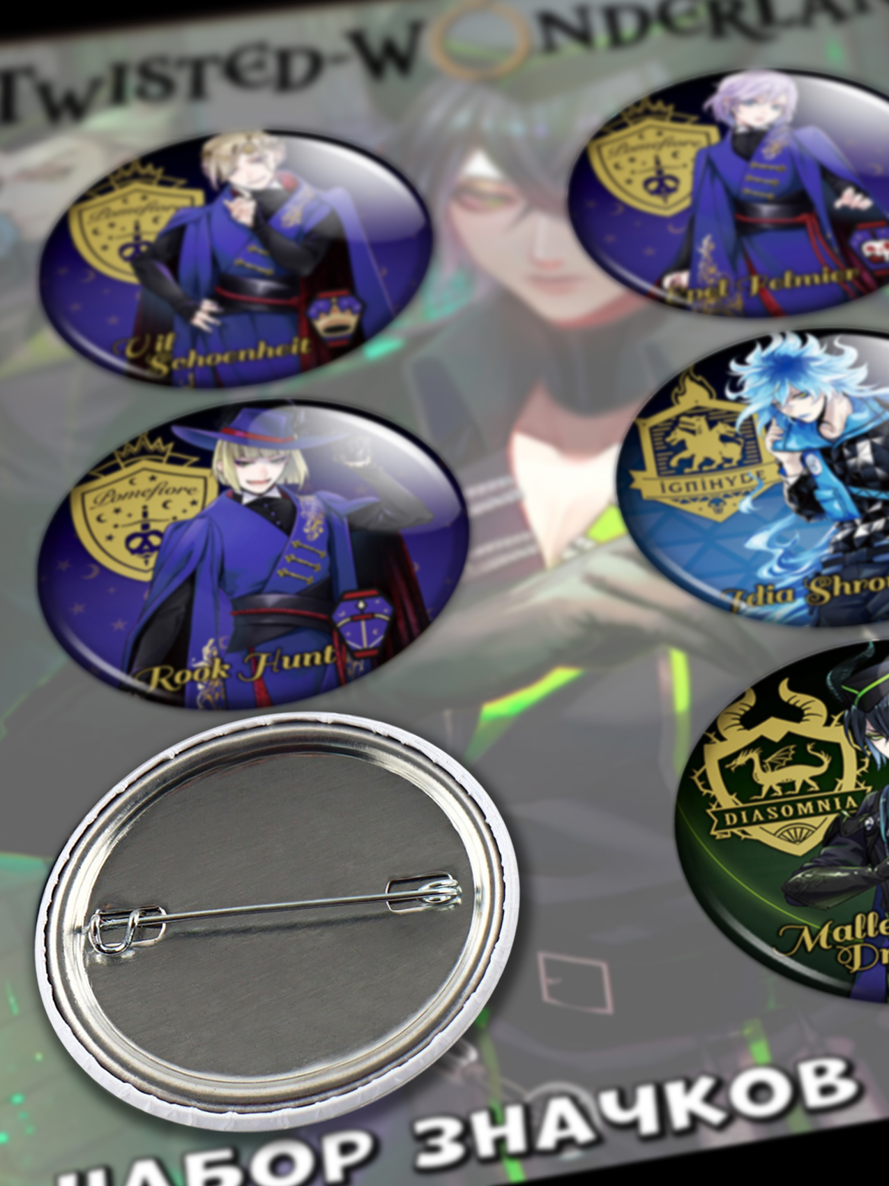 Укрась свой рюкзак стильными значками Twisted Wonderland No.2! Набор состоит из 5 уникальных значков с различными дизайнами, вдохновленными мистическим миром. Изготовлены из прочного металла, они прекрасно дополнят любой образ и подчеркнут твою индивидуальность. Прояви свою любовь к магии и загадочности с этими яркими и стильными аксессуарами!