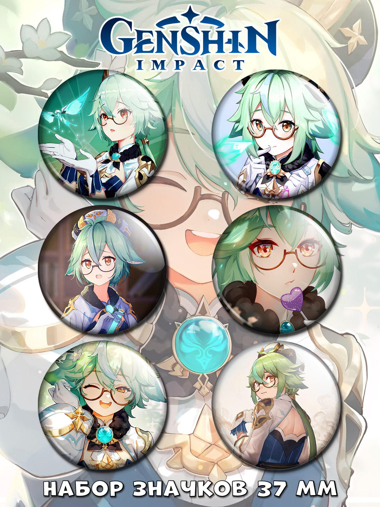 Набор аниме значков Геншин Импакт No.2 Сахароза