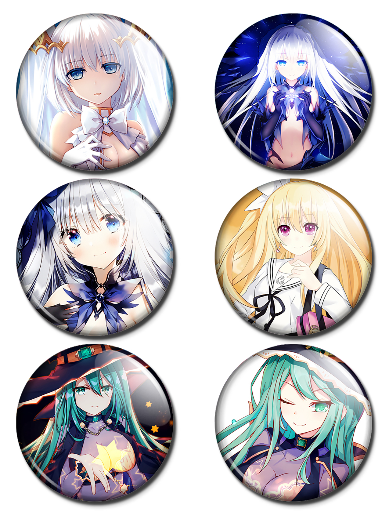 Набор из 6 значков размером 37 мм. Значки расположены на красочной картонной подложке и упакованы в пакет.