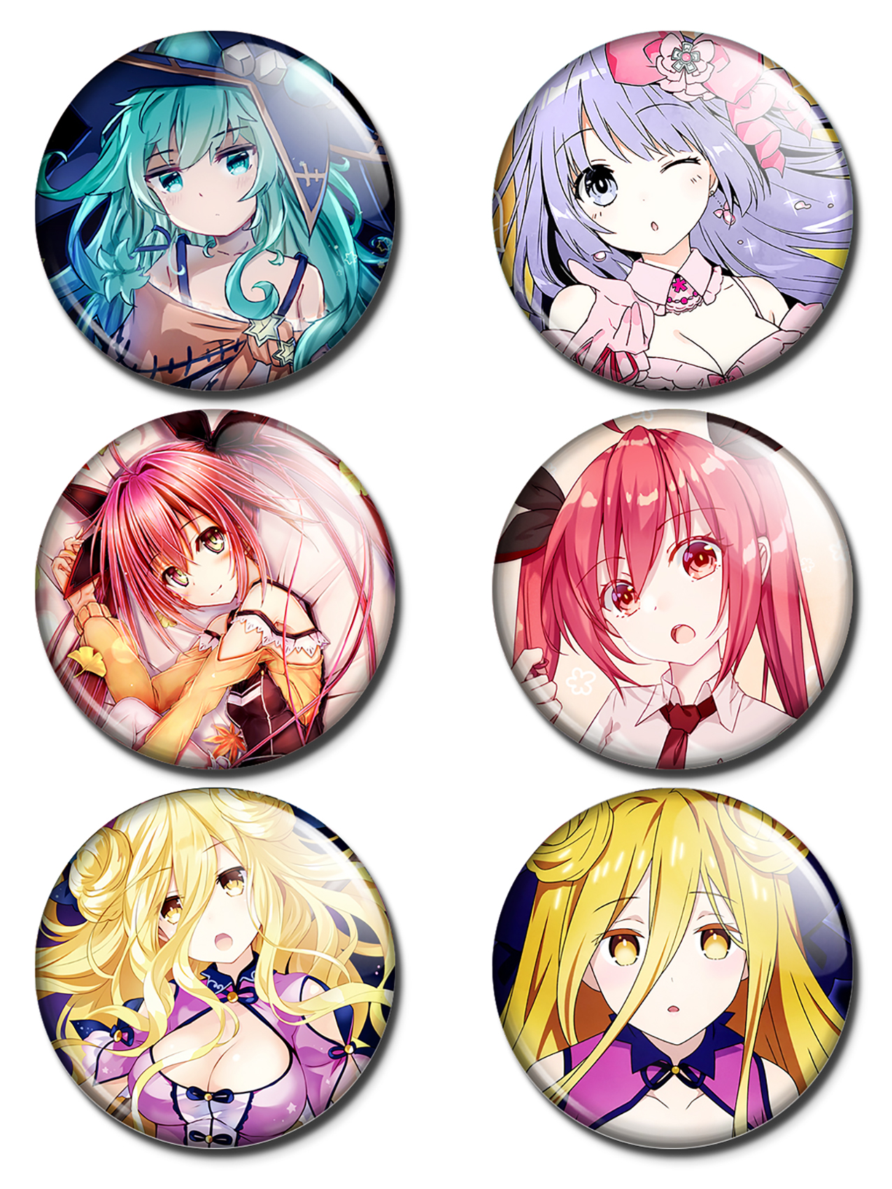 Набор из 6 значков размером 37 мм. Значки расположены на красочной картонной подложке и упакованы в пакет.