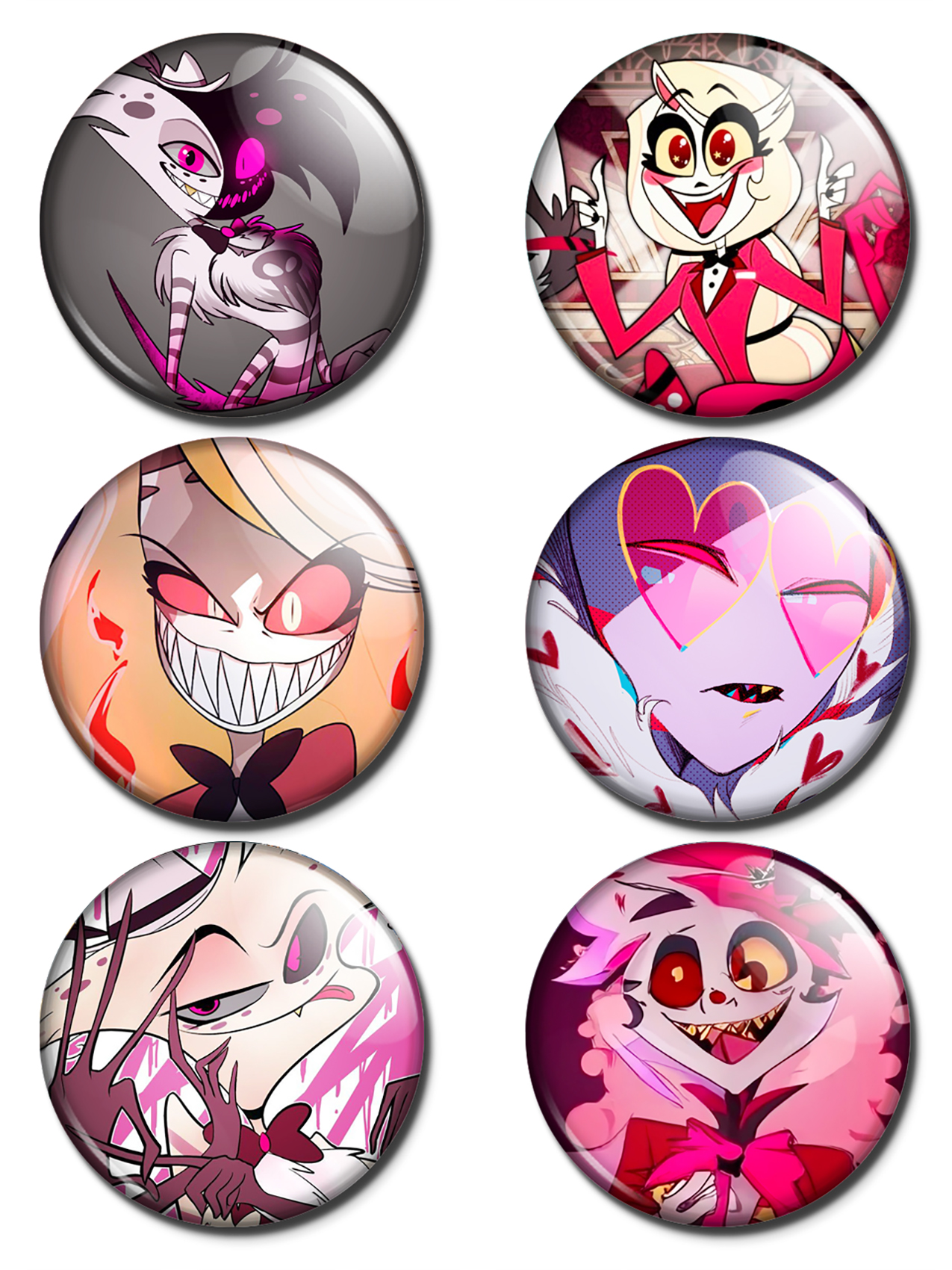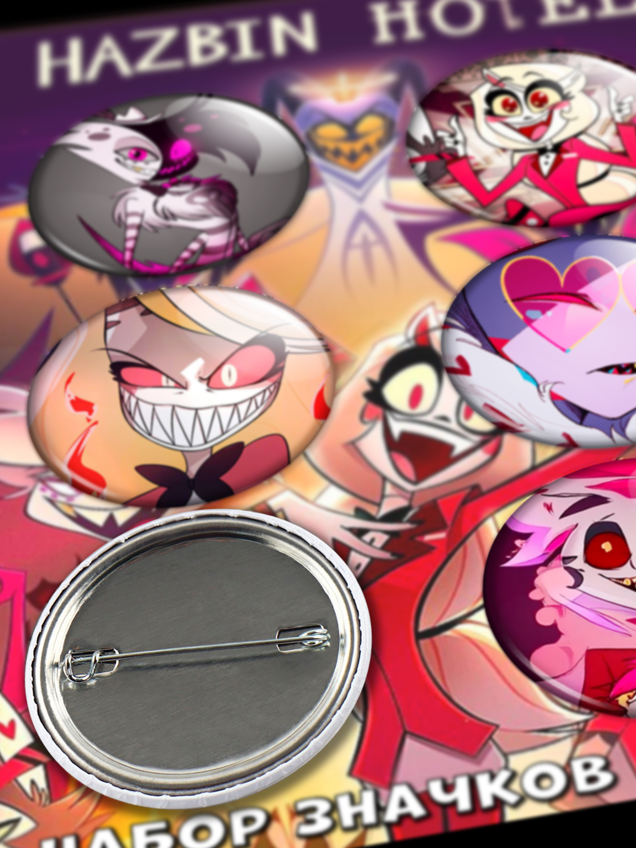 Укрась свою одежду яркими и стильными значками аниме "Отель Хазбин"! Эти красочные значки с изображениями любимых персонажей станут отличным дополнением к любому образу. Выполненные из качественных материалов, они прослужат долгое время и подчеркнут твою любовь к этому захватывающему мультсериалу. Покажи всем свою страсть к аниме с этими уникальными значками!