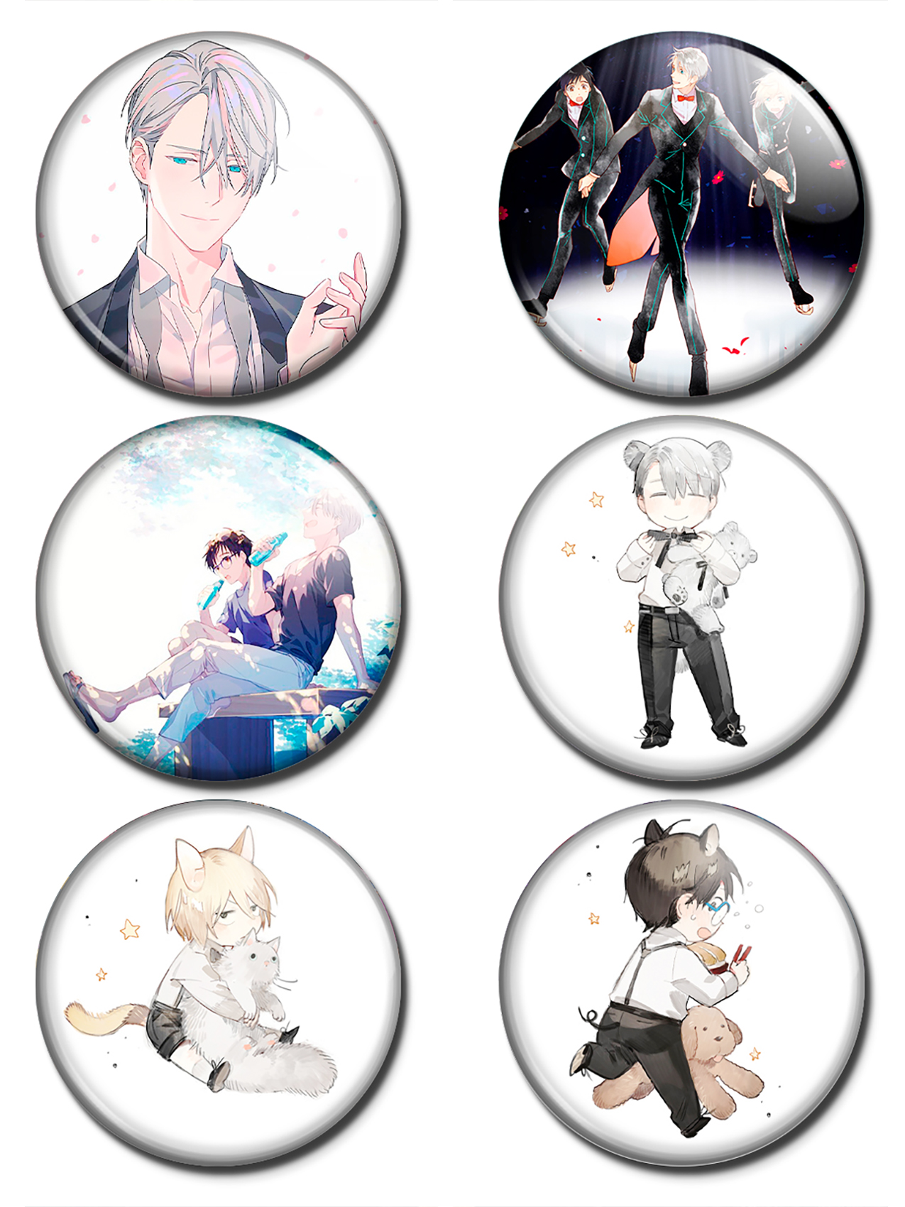 "Значки Юри на льду" - это уникальные и стильные аксессуары для любителей аниме "Юри на льду". Каждый значок изготовлен из высококачественных материалов, что обеспечивает долговечность и яркость цветов. Благодаря яркому дизайну и оригинальным изображениям главных героев, эти значки станут отличным дополнением к вашему образу и прекрасным подарком для поклонников аниме. Покажите свою любовь к этому захватывающему спортивному мультсериалу с помощью значков "Юри на льду"!