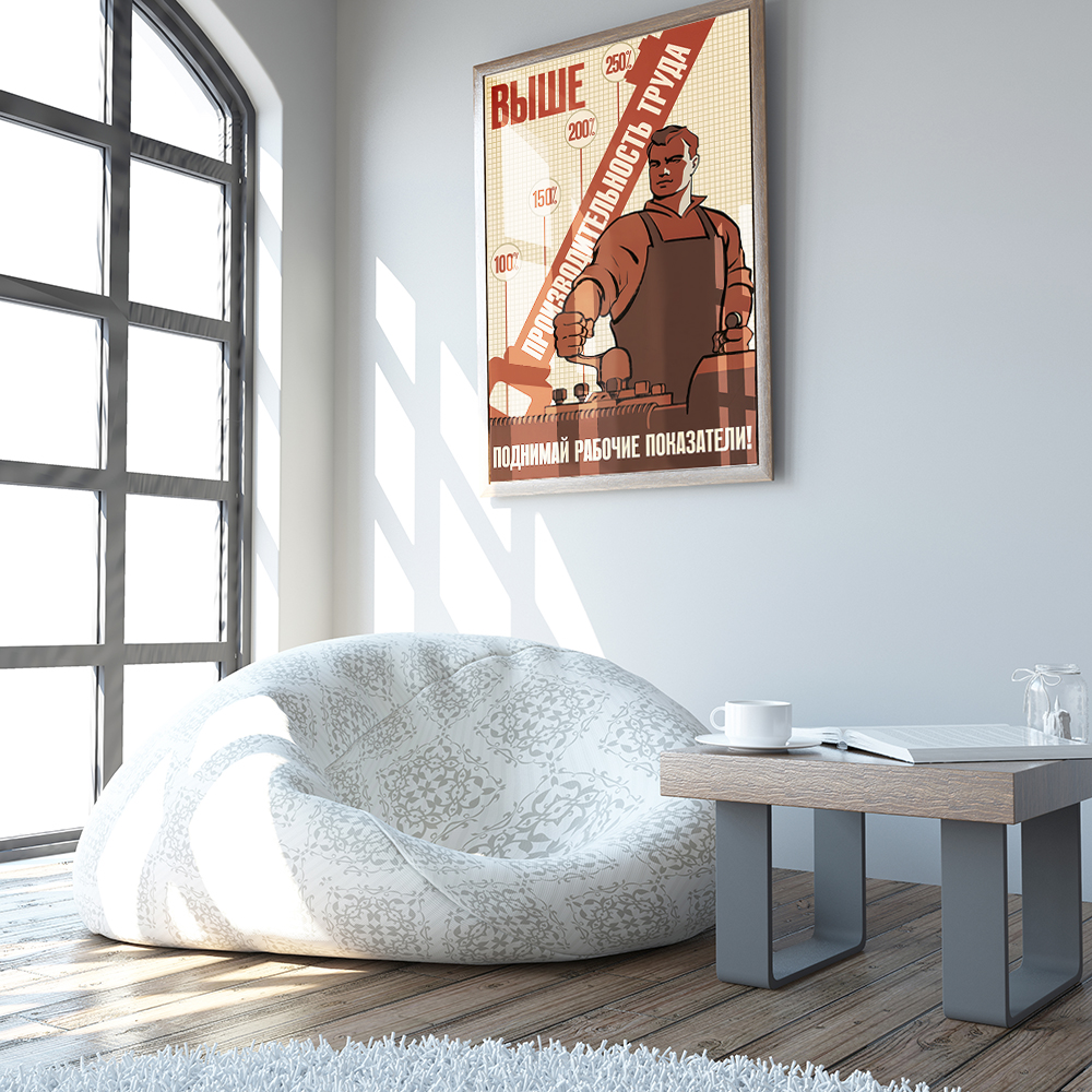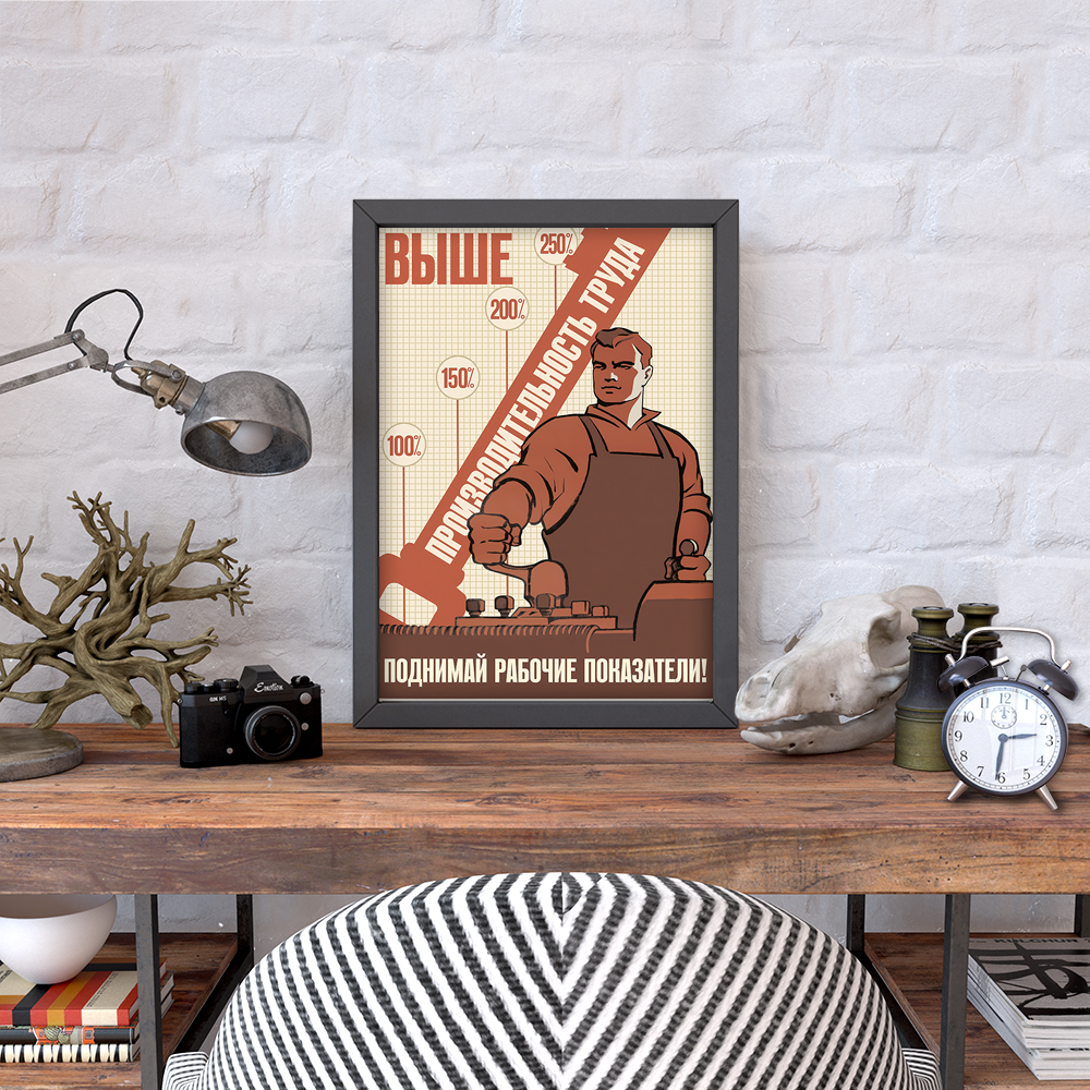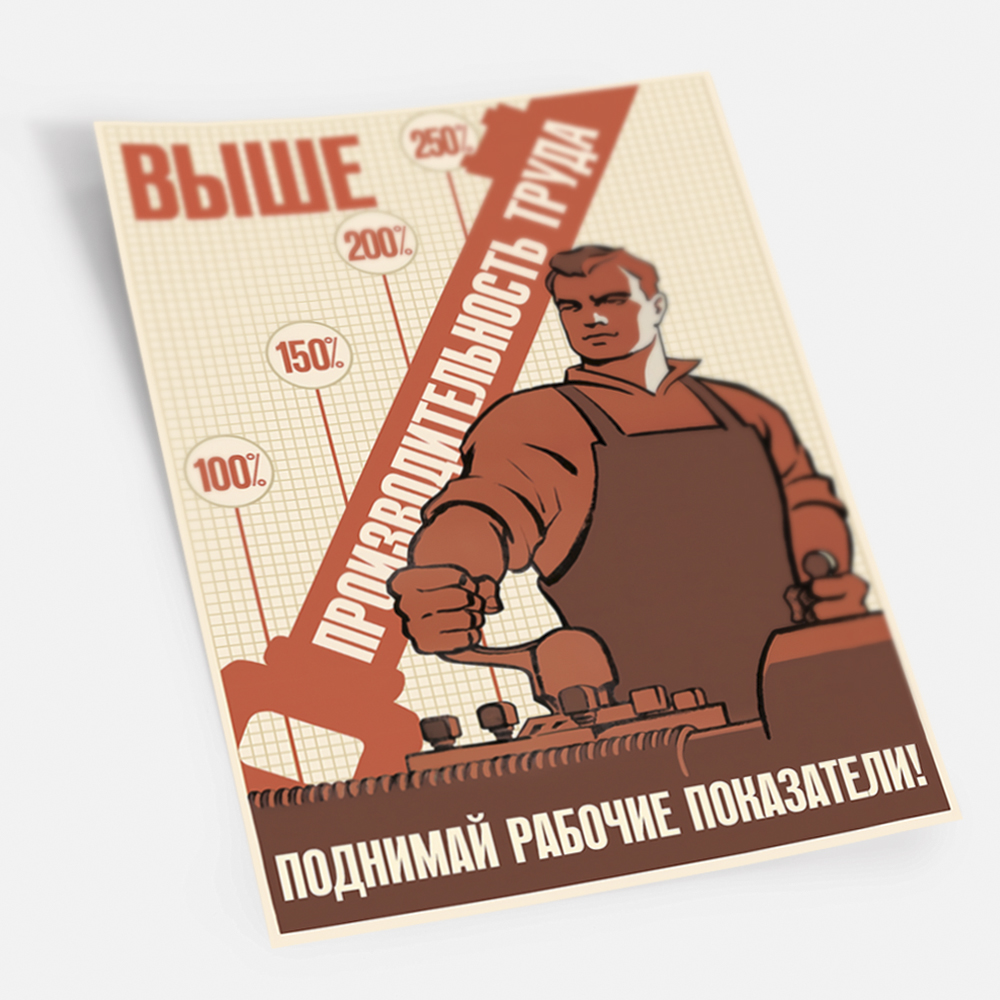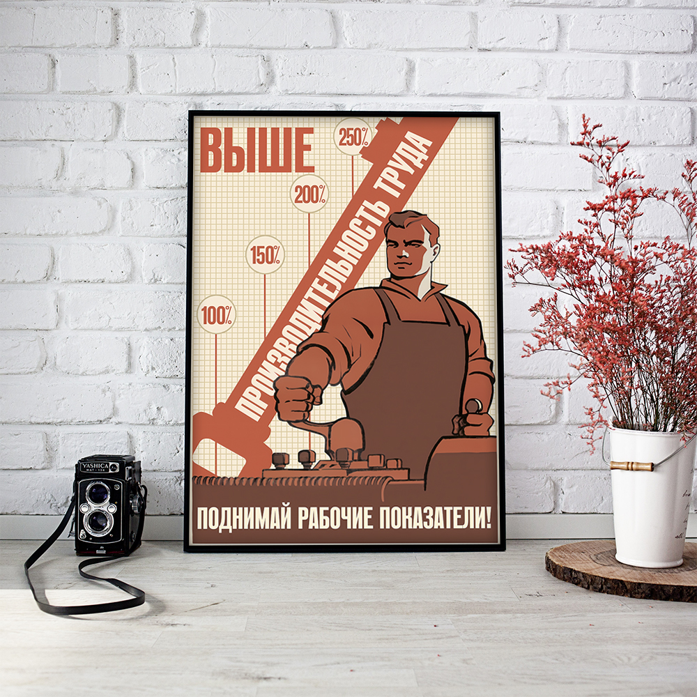 Постер СССР "Выше производительность труда. Поднимай рабочие показатели" / Плакат на стену